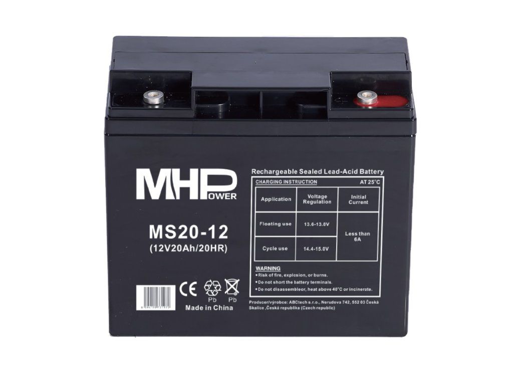 Olověné akumulátory MHPower navržené pro aplikace záložních zdrojů a UPS se vyznačují vysokou jakostní kvalitou, spolehlivostí a dlouhou provozní životností. Malý vnitřní odpor předurčuje použití v zařízeních s vysokými vybíjecími proudy jako jsou měniče, startéry. Jedná se o uzavřené olověné akumulátory v provedení VRLA. Výhody této konstrukce, společně s technologií AGM (Absorbed Glass Mat) jsou především tyto: - vyšší maximální vybíjecí proudy - bezúdržbová - delší životnost - otřesuvzdorné - leakproof – uzavřené – nerozlitelné Olověné akumulátory MHPower jsou vhodné jako náhradní baterie pro elektronické systémy a především pro následující aplikace: - záložní zdroje (UPS) - elektronické protipožární systémy (EPS) - elektronické zabezpečovací systémy (EZS) - telekomunikační zařízení - nouzové osvětlení - geofyzikální, meteorologické a medicínské přístroje a vybavení - zálohování oběhových čerpadel a kotlů Hermeticky uzavřená, bezúdržbová Dlouhá životnost, nízké samovybíjení Fyzické charakteristiky Hmotnost [kg]: 5,35 Šířka [mm]: 182 Výška [mm]: 167 Výška s konektory [mm]: 167 Hloubka [mm]: 77Dodatočné parametre