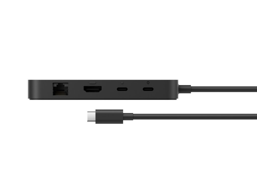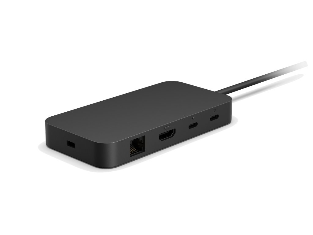 Microsoft Surface USB4 Dock Porty a připojení *100W napájení *USB-C/USB4 kabel s dual LED indikátorem *USB4 podpora: nabíjení, dual display, až 40 Gbps přenos dat *1 přední USB-A (USB 3.2 Gen 2, 7,5W) *1 přední USB-C (USB4 Gen 3 kompatibilní s Thunderbolt 4, video display povoleno, 7,5W) *1 zadní USB-C (USB4 Gen3 kompatibilní s Thunderbolt 4, video display povoleno, 7,5W) *1 zadní HDMI 2.1 *1 zadní USB-C pro zdroj *1 ethernet (1 Gbit/s) *Bezpečnostní zámek - Kensington Kompatibilita *S Surface zařízeními a s jakýmkoliv USB-C a USB4/Thunderbolt zařízením. *USB4 připojení podporuje dvě 4K externí obrazovky až na 60Hz. *Surface USB4 Dock umožňuje rozšířit vizuální pracovní prostor a pracovat současně na třech obrazovkách. Rozměry a hmotnost *120mm x 60mm x 15mm *206 g Spravovatelnost Pro podporované hostovací zařízení *Media Access Control (MAC) průchozí adresa *Aktualizace firmwaru přes Windows Update nebo Surface aplikaci *Probuzení v síti LAN z Modern Standby, S4/S5 Obsah balení *Surface USB4 Dock *100W USB-C Power Supply Další informace na stránkách výrobce: https://learn.microsoft.com/en-us/surface/surface-usb4-dock Datasheet k produktu je ke stažení na záložce OdkazyDodatočné parametre