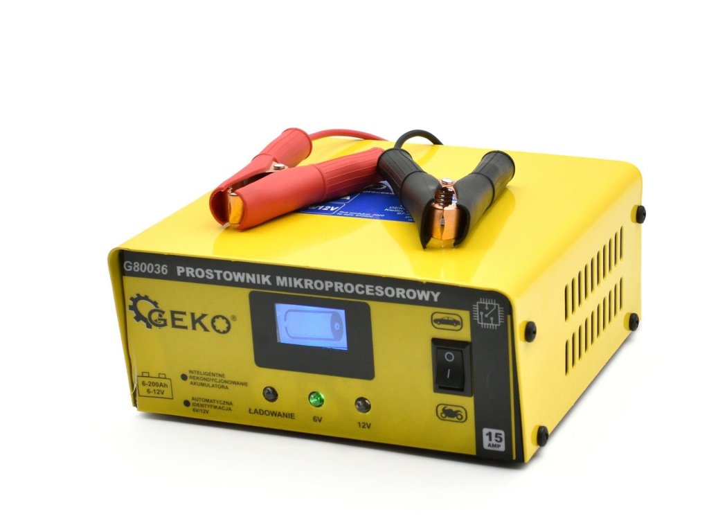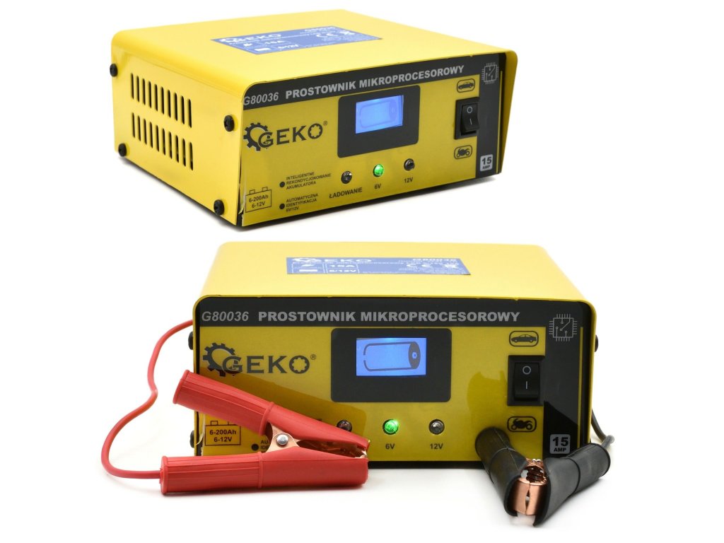 Mikroprocesorová nabíječka autobaterií LCD 6/12V 15A GEKO