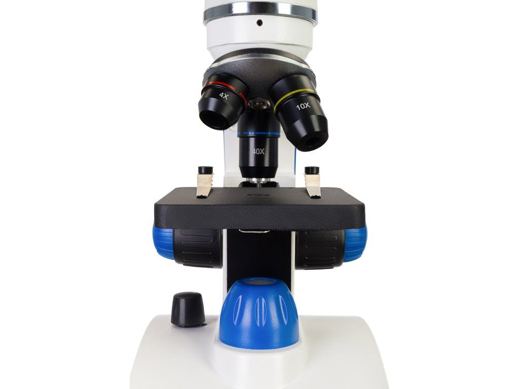 - Hrubé a jemné zaostrovanie, pracovný stolík mikroskopu so svorkami