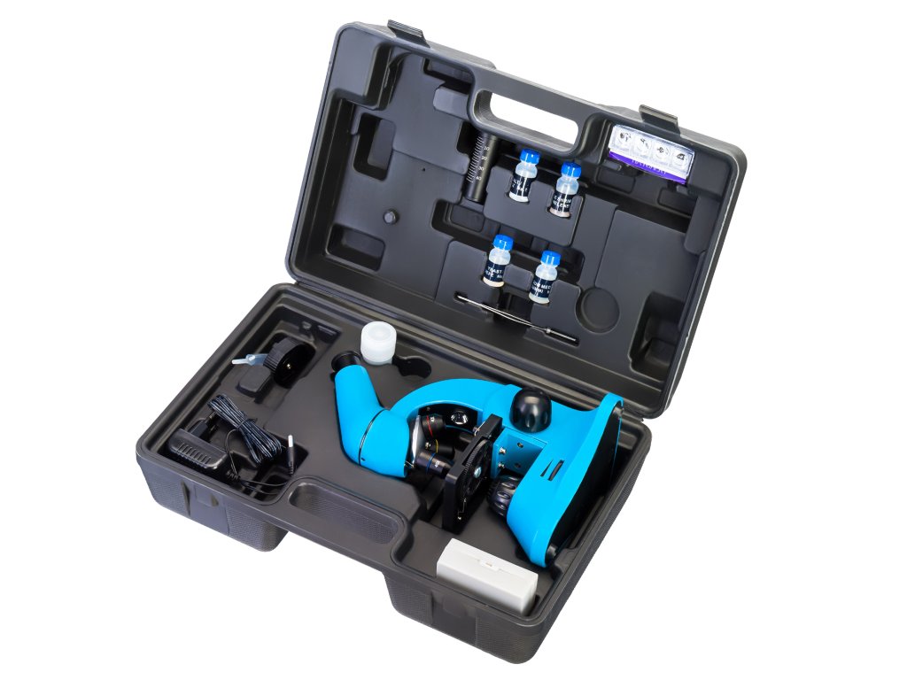 Mikroskop sa dodáva v odolnom plastovom kufríku. Pri preprave v kufríku sa časti zariadenia nerozbijú ani nestratia. Puzdro navyše chráni mikroskop pred prachom.
