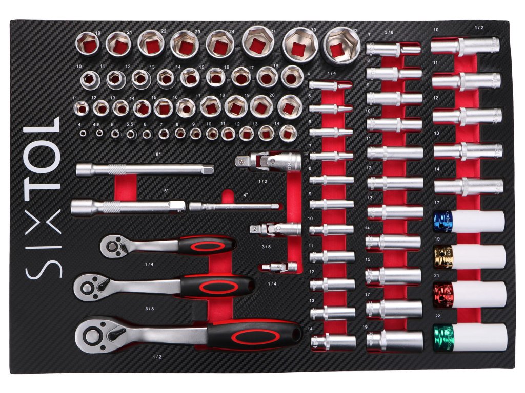 Modul do dílenských vozíků SIXTOL MECHANIC TOOL TRAY 6 nabízí rozsáhlou kombinaci ráčen, hlavic a nástavců v metrických rozměrech, díky čemuž je vhodný pro širokou škálu servisních úkonů. Přehledné uspořádání v pevné EVA pěně umožňuje rychlou orientaci a bezpečné uložení nářadí, zatímco pestrá škála hlavic – včetně variant pro hliníkové disky – zvyšuje univerzálnost celého modulu. Modul je koncipován pro efektivní práci v autoservisech, dílnách i domácích garážích, kde poskytne praktický a okamžitě dostupný výběr nářadí pro utahování a povolování šroubových spojů.Hlavní výhody: