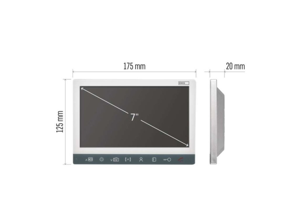 farba: strieborná|farebný displej: áno|intercom: áno|montáž: na stenu|možnosť pripojenia CCTV kamier: áno|napájanie monitora: 12 V DC (súčasťou balenia)|odporúčaná kamerová jednotka: H3016, H3017, H3018|ovládanie pojazdu brány: áno|ovládanie zámku a pojazdu brány: áno|počet melódií: 10 + vlastný|počet vodičov (monitor/zámok/brána): 4+0+2|požadovaná kabeláž: FTP alebo SYKFY 5 × 2 × 0,5|predajný obal: 1 ks, krabica|regulácia hlasitosti: áno|rozmer monitora: 175 × 125× 20 mm|veľkosť displeja: 7"|záručná doba: 2 rokyDodatočné parametre