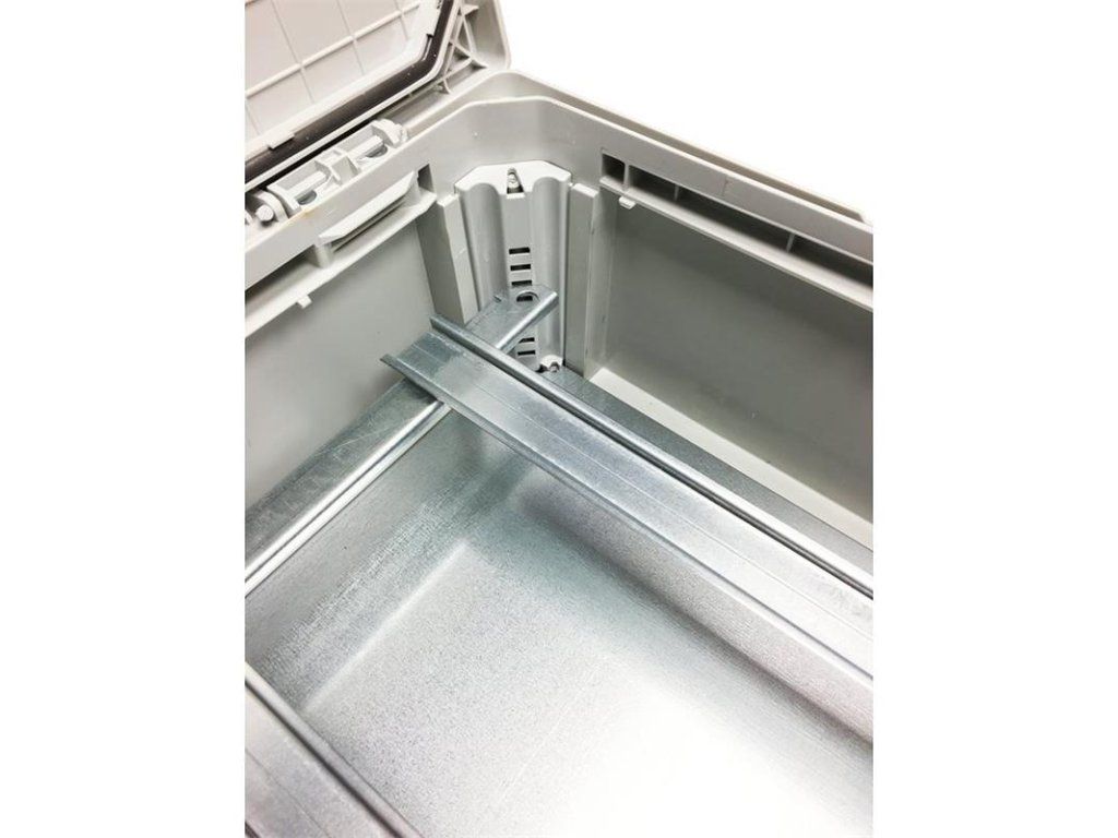 Montážní rám MAGNA I-39134 pro DIN lištu s modul. krytem pro skříně MAGNA 39134 a 39134-T IP65, 22mod. (2x 11mod.), obsahuje kovový držák (rám), DIN lišty 35mm pro modulové přístroje (jističe, chrániče, vypínače, stykače, spínací hodiny apod.), kompletní spojovací materiál, plastový kryt modulů. Montážní ocelový rám I-39124 pro uchycení DIN lišty s modul. krytem pro MAGNA 39124 a 39134-T IP65, 22mod. (2x 11mod.), komplet se spojovacím materiálem, díky tomuto příslušenství získáte rozváděč, který bude po otevření dvířek splňovat ochranu proti dotyku.Dodatočné parametre
