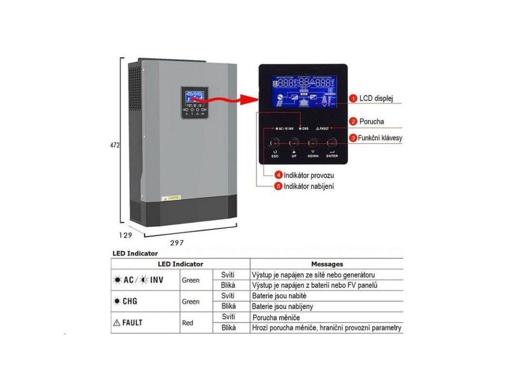 Zariadenie je kombináciou meniča s čistou sínusovou vlnou, UPS a regulátora MPPT pre solárne panely. Ide teda o záložný zdroj so zálohovaním verejnej siete alebo generátora, nabíjačkou batérií a regulátorom MPPT pre solárne panely, pričom prioritu zálohovania možno nastaviť aj opačne, t. j. prioritu verejnej siete a zálohovanie batérií alebo fotovoltických panelov.