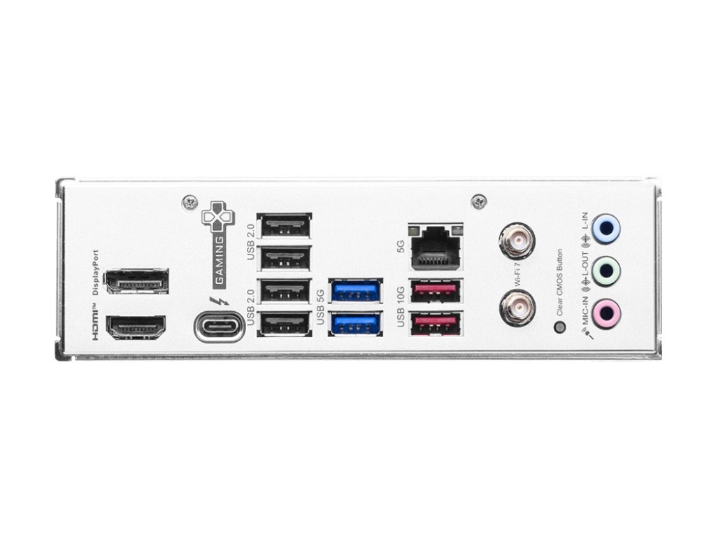 MSI B860 GAMING PLUS WIFI Chipset: Intel® B860 Rozměrový formát: ATX (243,84x304,8mm) Podpora pro procesory: Intel® Core™ Ultra Patice procesoru: LGA1851 Paměť: * 4x UDIMM patice podporující až 256GB, DDR5 8800 - 6400 (OC) MT/s / 6400 - 4800 (JEDEC) MT/s paměťové moduly * dvoukanálová architektura paměti * podpora paměťových modulů Extreme Memory Profile (XMP) Grafické výstupy: * 1x Thunderbolt™ 4 Typ-C s maximálním rozlišením 4K 120Hz / 8K 60Hz - Podpora pro DisplayPort 2.1 s UHBR20 nad USB Type-C * 1x DisplayPort s maximálním rozlišením 4K při 60 Hz - Podpora pro DisplayPort verze 1.4 * 1x HDMI™ s maximálním rozlišením 4K při 60 Hz - Podpora pro verzi HDMI 2.1 Zvuková karta: * Kodek Realtek® ALC897 * High Definition Audio * 7.1 kanál Ethernet: Intel ® Killer™ E5000 5Gbps LAN WLAN + Bluetooth: * Intel ® Killer™ BE1750x Wi-Fi 7 (802.11 a, b, g, n, ac, ax, be), podpora frekvenčních pásem 2,4/5/6 GHz + Bluetooth v5.4 Rozšiřující sloty: * 1x PCI_E1 Gen PCIe 5.0 podporuje až x16 (z CPU) * 1x PCI_E2 Gen PCIe 4.0 podporuje až x1 (z čipové sady) * 1x PCI_E3 Gen PCIe 4.0 podporuje až x4 (z čipové sady) * 1x PCI_E4 Gen PCIe 4.0 podporuje až x1 (z čipové sady) Úložný prostor: celkem podporuje 3 slotů M.2 a 4 portů SATA 6Gb/s * 1x M.2, typ 2280/2260 - podpora PCIe 5.0 x4 SSD (z CPU) * 1x M.2, typ 2280/2260/2242 - podpora PCIe 4.0 x4 SSD (z čipové sady) * 1x M.2, typ 2280/2260 - podpora PCIe 4.0 x2 SSD (z čipové sady) * 4x port SATA 6Gb/s RAID řadič: podpora RAID 0/1/5/10 pro úložná zařízení SATA USB: Zadní USB (celkem 8 portů) * 4x USB 2.0 * 2x USB 5 Gbps Typ A * 2x USB 10 Gbps Typ A Přední USB (celkem 9 portů) * 4x USB 2.0 * 4x USB 5 Gbps Typ A * 1x USB 10 Gbps Typ C Porty na zadním panelu: * 1x Tlačítko clear CMOS * 4x USB 2.0 * 2x USB 5 Gbps Typ A * 2x USB 10 Gbps Typ A * 1x Thunderbolt™ 4 40 Gbps (Typ-C) * 1x HDMI * 1x DisplayPort * 1x RJ-45 * 3x audio jack * 2x anténní konektory Interní porty: Napájení * 1x Napájecí konektor (ATX_PWR) * 2x Napájecí konektor (CPU_PWR) * 1x Napájecí konektor (PCIE_PWR 8pin) Související s ventilátorem a chlazením * 1x CPU Fan * 1x Combo Fan (Pump_Sys AF Fan) * 4x System Fan Související s úložištěm * 3x M.2 slot * 4x SATA 6Gb/s port USB * 4x USB 2.0 * 4x USB 5 Gbps Typ A * 1x USB 10 Gbps Typ C Ostatní * 1x EZ Conn-header (JAF_1) * 2x adresovatelný RGB Gen2 LED strip konektor (JARGB_V2) * 2x Front Panel (JFP) * 1x Chassis Intrusion (JCI) * 1x Front Audio (JAUD) * 1x Com Port (JCOM) * 1x Tuning Controller connector(JDASH) * 1x RGB LED konektor (JRGB) * 1x TPM pin header(Podpora TPM 2.0) * 1x konektor karty Thunderbolt5 (JTBT5, podpora RTD3) Odkaz na stránku výrobce: https://www.msi.com/Motherboard/B860-GAMING-PLUS-WIFI/OverviewDodatočné parametre