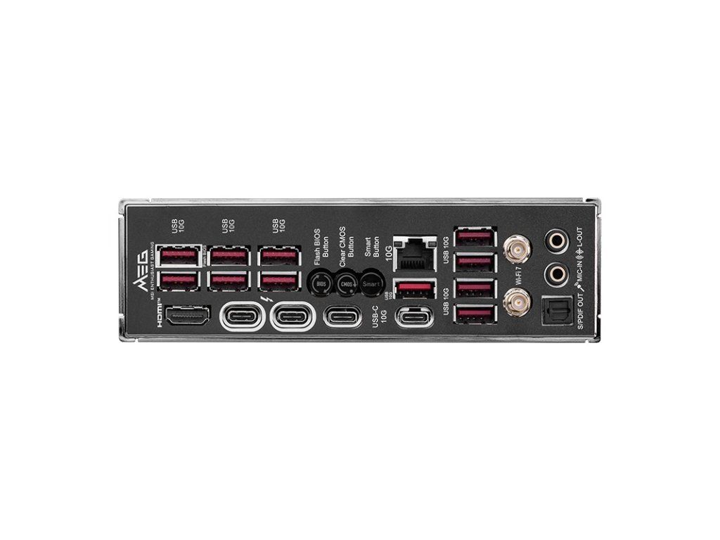 MSI MEG Z890 ACE Chipset: Intel® Z890 Rozměrový formát: ATX (304,8x243,84mm) Podpora pro procesory: Intel® Core™ Ultra (řada 2) Patice procesoru: LGA1851 Paměť: *4x DDR5 UDIMM, maximální kapacita paměti 256GB, podpora paměti 9200-6400 (OC) MT/s/6400-4800 (JEDEC) MT/s *max. frekvence přetaktování: • 1DPC 1R rychlost až 9200+ MT/s • 1DPC 2R rychlost až 7200+ MT/s • 2DPC 1R rychlost až 6400+ MT/s • 2DPC 2R rychlost až 5600+ MT/s *podpora Intel® POR Speed a JEDEC Speed *podpora přetaktování paměti a Intel® XMP 3.0 *podpora Dual-Controller Dual-Channel režimu *podpora Non-ECC, bez vyrovnávací paměti *podpora CUDIMM Grafické porty: (Specifikace grafiky se mohou lišit v závislosti na nainstalovaném CPU.) *2x USB-C Thunderbolt™ 4 DisplayPort 2.1 *1x HDMI™ 2.1 Zvuková karta: 7.1-Channel High Definition Audio, kombinovaný kodek Realtek® ALC4082 + ESS9219Q DAC/HPA Ethernet: 1x Marvell® AQC113CS 10Gb/s LAN WLAN + Bluetooth: *Intel® Killer™ BE1750x Wi-Fi 7 - bezdrátový modul je předinstalován ve slotu M.2 (Key-E) - podporuje MU-MIMO TX/RX, 2,4GHz/5GHz/6GHz (320MHz) až 5,8Gb/s - podporuje 802.11 a/b/g/n/ac/ax/be *Bluetooth® 5.4, MLO, 4KQAM Rozšiřující sloty: 3x PCI-E x16 Úložný prostor: celkem podporuje 5 slotů M.2 a 4 porty SATA 6Gb/s *M.2_1 (z CPU) podpora až PCIe 5.0 x4, typ 2280/2260 *M.2_2 (z CPU) podpora až PCIe 4.0 x4, typ 2280/2260 *M.2_3 (z čipsetu) podpora až PCIe 4.0 x4, typ 2280/2260 *M.2_4 (z CPU + čipsetu) podpora až PCIe 5.0 x4 + PCIe 4.0 x4, typ 22110/2280/2260 *M.2_5 (z čipsetu) podpora až PCIe 4.0 x4/režim SATA, typ 22110/2280 *4x port SATA 6Gb/s RAID řadič: podpora RAID 0/1/5/10 pro úložná zařízení SATA a M.2 NVMe USB: Zadní USB (celkem 15 portů) *2x Thunderbolt™ 4 40Gb/s typ C *2x USB 10 Gb/s typ C *11x USB 10 Gb/s typ A Přední USB (celkem 9 portů) *4x USB 2.0 *4x USB 5 Gb/s typ A *1x USB 20 Gb/s typ C Porty na zadním panelu: *1x RJ-45 10G LAN *1x Wi-Fi/Bluetooth modul *2x audio konektor *1x optický S/PDIF Out *1x tlačítko Flash BIOS *1x tlačítko Clear CMOS *1x tlačítko Smart *1x HDMI™ 2.1 *2x Thunderbolt™ 4 40Gb/s typ C *2x USB 10 Gb/s typ C *11x USB 10 Gb/s typ A Interní porty: Napájení *1x napájecí konektor (ATX_PWR) *2x napájecí konektor (CPU_PWR) *1x napájecí konektor (PCIE_PWR 8pin) *1x konektor pro rychlé nabíjení typu C (PD_PWR1) Související s ventilátorem a chlazením *1x CPU Fan *2x Combo Fan (Pump_Sys Fan) *5x System Fan USB *4x USB 2.0 *4x USB 5 Gb/s typ A *1x USB 20 Gb/s typ C LED *3x adresovatelný V2 RGB LED konektor (JARGB_V2) *1x RGB LED konektor (JRGB) *1x EZ Digi-Debug LED *4x EZ Debug LED *1x EZ Memory Detection LED *1x EZ LED Control switch Ostatní *1x EZ Conn-header (JAF_2) *2x Front Panel (JFP) *1x Chassis Intrusion (JCI) *1x Water Flow connector *1x Slow Mode Booting Jumper (JSLOW) *1x pření audio (JAUD) *2x Thermal Sensor connector (T_SEN) *1x Tuning Controller connector (JDASH) *1x TPM pin header (podpora TPM 2.0) *V-check point Příslušenství: *1x USB flash disk *1x EZ Wi-Fi anténa *1x EZ M.2 Clip II Remover *1x 1 na 2 RGB prodlužovací kabel *1x ARGB prodlužovací kabel *1x 1 na 3 EZ Conn-kabel (V2) *1x EZ Front Panel kabel *4x SATA 6Gb/s kabel *2x Thermistor kabel *1x EZ M.2 Clips II *1x set M.2 Screw a Standoff *1x sada samolepek *1x uživatelská příručka Odkaz na stránku výrobce: https://www.msi.com/Motherboard/MEG-Z890-ACE/Dodatočné parametre