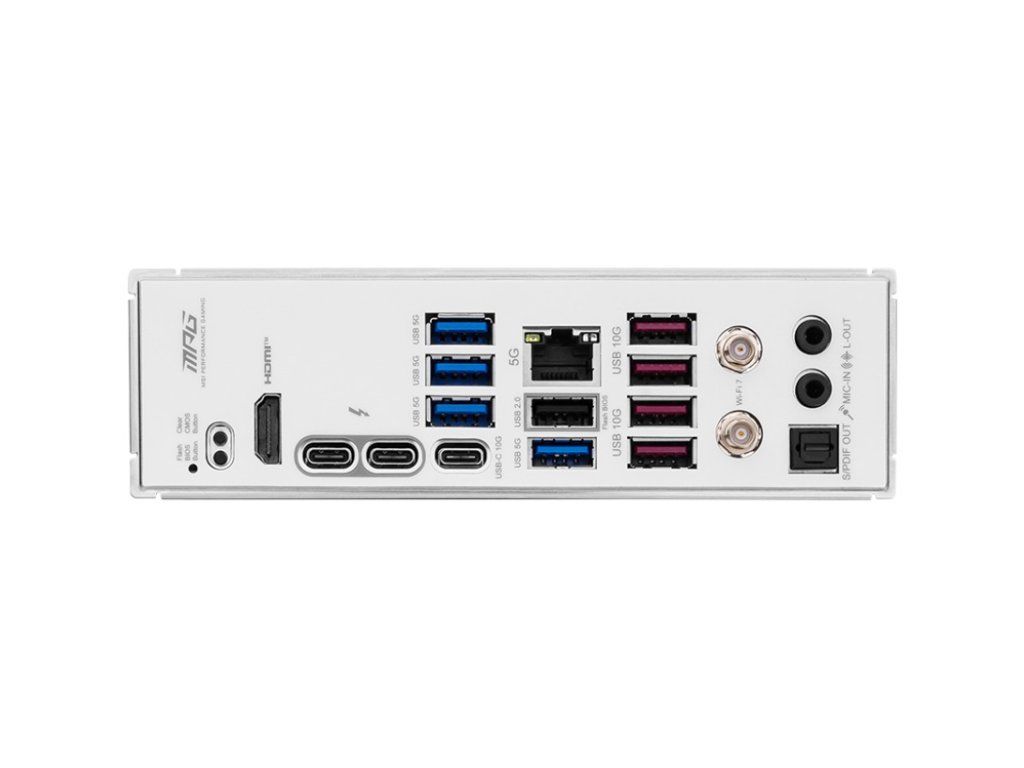 MSI MPG Z890 EDGE TI WIFI Chipset: Intel® Z890 Rozměrový formát: ATX (304,8x243,84mm) Podpora pro procesory: Intel® Core™ Ultra (řada 2) Patice procesoru: LGA1851 Paměť: * 4x DDR5 UDIMM, maximální kapacita paměti 256GB, podpora paměti 9200-6400 (OC) MT/s/6400-4800 (JEDEC) MT/s * max. frekvence přetaktování: • 1DPC 1R rychlost až 9200+ MT/s • 1DPC 2R rychlost až 7200+ MT/s • 2DPC 1R rychlost až 4800+ MT/s • 2DPC 2R rychlost až 4800+ MT/s * podpora Intel® POR Speed a JEDEC Speed * podpora přetaktování paměti a Intel® XMP 3.0 * podpora Dual-Controller Dual-Channel režimu * podpora Non-ECC, bez vyrovnávací paměti * podpora CUDIMM Grafické porty: (Specifikace grafiky se mohou lišit v závislosti na nainstalovaném CPU.) * 1x HDMI™ 2.1 * 2x USB-C Thunderbolt™ 4 DisplayPort 2.1 Zvuková karta: 7.1-Channel High Definition Audio, kodek Realtek® ALC1220P Ethernet: Intel® Killer™ E5000B 5G LAN WLAN + Bluetooth: * Intel® Killer™ BE1750x Wi-Fi 7 - bezdrátový modul je předinstalován ve slotu M.2 (Key-E) - podporuje MU-MIMO TX/RX, 2,4GHz/5GHz/6GHz (320MHz) až 5,8Gb/s - podporuje 802.11 a/b/g/n/ac/ax/be * Bluetooth® 5.4, MLO, 4KQAM Rozšiřující sloty: * 2x PCI-E x16 * 1x PCI-E x1 Úložný prostor: celkem podporuje 5 slotů M.2 a 4 porty SATA 6Gb/s * M.2_1 (z CPU) podpora až PCIe 5.0 x4, 2280/2260 * M.2_2 (z CPU) podpora až PCIe 4.0 x4, 2280/2260 * M.2_3 (z čipové sady) podpora až PCIe 4.0 x4, 2280/2260 * M.2_4 (z čipové sady) podpora až PCIe 4.0 x4, 22110/2280 * M.2_5 (z čipové sady) podpora až PCIe 4.0 x4/režim SATA, 22110/2280/2260 * 4x port SATA 6Gb/s RAID řadič: podpora RAID 0/1/5/10 pro úložná zařízení SATA a M.2 NVMe USB: Zadní USB (celkem 12 portů) * 2x Thunderbolt™ 4 (typ C) * 1x USB 3.2 Gen 2 (typ C) * 4x USB 3.2 Gen 2 * 4x USB 3.2 Gen 1 * 1x USB 2.0 Přední USB (celkem 7 portů) * 1x USB 3.2 Gen 2x2 (typ C) * 2x USB 3.2 Gen 1 * 4x USB 2.0 Porty na zadním panelu: * 1x RJ-45 5G LAN * 1x Wi-Fi/Bluetooth modul * 2x audio konektor * 1x optický S/PDIF Out * 1x tlačítko Flash BIOS * 1x tlačítko Clear CMOS * 2x Thunderbolt™ 4 40Gb/s (typ C) * 1x HDMI™ * 1x USB 3.2 Gen 2 10Gb/s (typ C) * 4x USB 3.2 Gen 2 10Gb/s (typ A) * 4x USB 3.2 Gen 1 5Gb/s (typ A) * 1x USB 2.0 Interní porty: Napájení * 1x napájecí konektor (ATX_PWR) * 2x napájecí konektor (CPU_PWR) * 1x napájecí konektor (PCIE_PWR 8pin) Související s ventilátorem a chlazením * 1x CPU Fan * 1x Combo Fan (Pump_Sys Fan) * 6x System Fan USB * 1x USB 3.2 Gen 2x2 (typ C) * 2x USB 3.2 Gen 1 * 4x USB 2.0 LED * 3x adresovatelný V2 RGB LED konektor (JARGB_V2) * 1x RGB LED konektor (JRGB) * 4x EZ Debug LED * 1x EZ Digit Debug LED Ostatní * 1x Thunderbolt5 card connector(JTBT5, podpora RTD3) * 2x Front Panel (JFP) * 1x Chassis Intrusion (JCI) * 1x pření audio (JAUD) * 1x EZ Conn-header (JAF_2) * 1x Thermal Sensor connectors (T_SEN) * 1x TPM pin header (podpora TPM 2.0) Příslušenství: * 2x SATA 6Gb/s kabel * 1x EZ Wi-Fi anténa * 3x EZ M.2 Clip II * 1x EZ M.2 klič na Clip II * 1x šroub M.2/standoff set * 1x 1 na 3 EZ Conn-kabel (V2) * 1x EZ Front panal kabel * 1x usb flash disk * 1x Shout out leták * 1x sada samolepek * 1x uživatelská příručka Odkaz na stránku výrobce: https://www.msi.com/Motherboard/MPG-Z890-EDGE-TI-WIFIDodatočné parametre