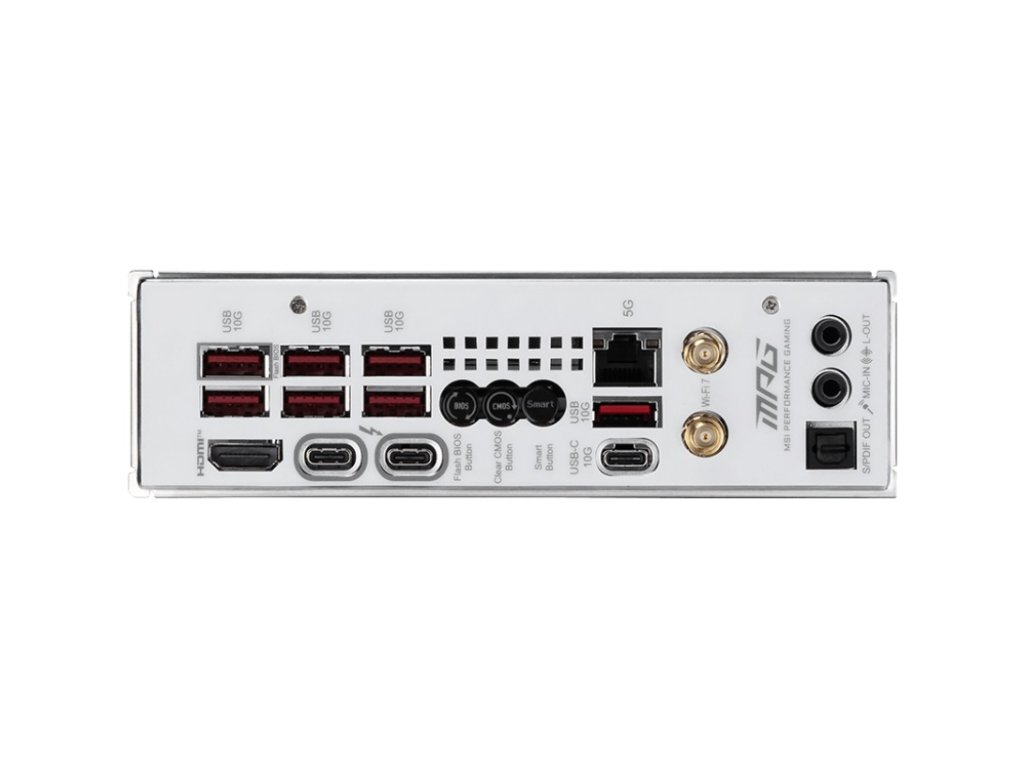 MSI MPG Z890I EDGE TI WIFI Chipset: Intel® Z890 Rozměrový formát: Mini-ITX (170x170mm) Podpora pro procesory: Intel® Core™ Ultra (řada 2) Patice procesoru: LGA1851 Paměť: * 2x DDR5 UDIMM, maximální kapacita paměti 128GB, podpora paměti 8600-6400 (OC) MT/s/6400-4800 (JEDEC) MT/s * max. frekvence přetaktování: • 1DPC 1R rychlost až 8600+ MT/s • 1DPC 2R rychlost až 7200+ MT/s * podpora Intel® POR Speed a JEDEC Speed * podpora přetaktování paměti a Intel® XMP 3.0 * podpora Dual-Controller Dual-Channel režimu * podpora Non-ECC, bez vyrovnávací paměti * podpora CUDIMM Grafické porty: (Specifikace grafiky se mohou lišit v závislosti na nainstalovaném CPU.) * 1x HDMI™ 2.1 * 2x USB-C Thunderbolt™ 4 DisplayPort 2.1 Zvuková karta: 7.1-Channel High Definition Audio, kodek Realtek® ALC4080 Ethernet: Intel® Killer™ E5000B 5G LAN WLAN + Bluetooth: * Intel® Killer™ BE1750x Wi-Fi 7 - bezdrátový modul je předinstalován ve slotu M.2 (Key-E) - podporuje MU-MIMO TX/RX, 2,4GHz/5GHz/6GHz (320MHz) až 5,8Gb/s - podporuje 802.11 a/b/g/n/ac/ax/be * Bluetooth® 5.4, MLO, 4KQAM Rozšiřující sloty: * 1x PCI-E x16 Úložný prostor: celkem podporuje 4 sloty M.2 a 2 porty SATA 6Gb/s * M.2_1 (z CPU) podpora až PCIe 5.0 x4, 2280 * M.2_2 (z CPU) podpora až PCIe 4.0 x4, 2280 * M.2_3 (z čipové sady) podpora až PCIe 4.0 x4/SATA, 2280 * M.2_4 (z čipové sady) podpora až PCIe 4.0 x4, 2280 * 2x port SATA 6Gb/s RAID řadič: podpora RAID 0/1/5 pro úložná zařízení SATA a RAID 0/1/5/10 pro úložná zařízení M.2 NVMe USB: Zadní USB (celkem 10 portů) * 2x Thunderbolt™ 4 (typ C) * 1x USB 3.2 Gen 2 (typ C) * 7x USB 3.2 Gen 2 Přední USB (celkem 5 portů) * 1x USB 3.2 Gen 2x2 (typ C) * 2x USB 3.2 Gen 1 * 2x USB 2.0 Porty na zadním panelu: * 1x RJ-45 5G LAN * 1x Wi-Fi/Bluetooth modul * 2x audio konektor * 1x optický S/PDIF Out * 1x tlačítko Flash BIOS * 1x tlačítko Clear CMOS * 1x talčítko Smart * 2x Thunderbolt™ 4 40Gb/s (typ C) * 1x HDMI™ * 1x USB 3.2 Gen 2 10Gb/s (typ C) * 7x USB 3.2 Gen 2 10Gb/s (typ A) Interní porty: Napájení * 1x napájecí konektor (ATX_PWR) * 1x napájecí konektor (CPU_PWR) Související s ventilátorem a chlazením * 1x CPU Fan * 1x Combo Fan (Pump_Sys Fan) * 1x System Fan USB * 1x USB 3.2 Gen 2x2 (typ C) * 2x USB 3.2 Gen 1 * 2x USB 2.0 LED * 3x adresovatelný V2 RGB LED konektor (JARGB_V2) * 4x EZ Debug LED Ostatní * 2x Front Panel (JFP) * 1x Chassis Intrusion (JCI) * 1x pření audio (JAUD) * 1x EZ Conn-header (JAF_2) * 1x Thermal Sensor connectors (T_SEN) * 1x TPM pin header (podpora TPM 2.0) Příslušenství: * 2x SATA 6Gb/s kabel * 1x EZ Wi-Fi anténa * 1x 5v1 XPANDER * 1x 5v1 XPANDER usb kabel 5Gb/s * 3x šroub M.2 * 1x 1 na 3 EZ Conn-kabel (V2) * 1x EZ Front panal kabel * 1x usb flash disk * 1x Shout out leták * 1x sada samolepek * 1x uživatelská příručka Odkaz na stránku výrobce: https://www.msi.com/Motherboard/MPG-Z890I-EDGE-TI-WIFIDodatočné parametre