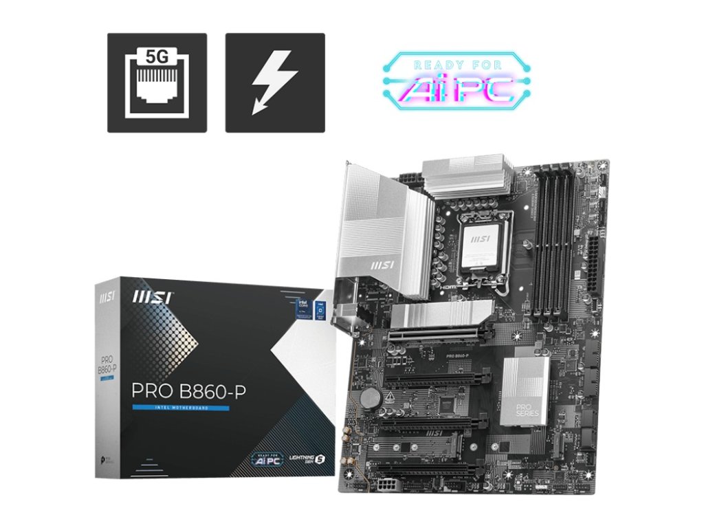 MSI PRO B860-P Chipset: Intel® B860 Rozměrový formát: ATX (243,84x304,8mm) Podpora pro procesory: Intel® Core™ Ultra Patice procesoru: LGA1851 Paměť: * 4x UDIMM patice podporující až 256GB, DDR5 8800 - 6400 (OC) MT/s / 6400 - 4800 (JEDEC) MT/s paměťové moduly * dvoukanálová architektura paměti * podpora paměťových modulů Extreme Memory Profile (XMP) Grafické výstupy: * 1x Thunderbolt™ 4 Typ-C s maximálním rozlišením 4K 120Hz / 8K 60Hz - Podpora pro DisplayPort 2.1 s UHBR20 nad USB Type-C * 1x DisplayPort s maximálním rozlišením 4K při 60 Hz - Podpora pro DisplayPort verze 1.4 * 1x HDMI™ s maximálním rozlišením 4K při 60 Hz - Podpora pro verzi HDMI 2.1 Zvuková karta: * Kodek Realtek® ALC897 * High Definition Audio * 7.1 kanál Ethernet: Realtek® 8126 5Gbps LAN Rozšiřující sloty: * 1x PCI_E1 Gen PCIe 5.0 podporuje až x16 (z CPU) * 1x PCI_E2 Gen PCIe 4.0 podporuje až x1 (z čipové sady) * 1x PCI_E3 Gen PCIe 4.0 podporuje až x4 (z čipové sady) * 1x PCI_E4 Gen PCIe 4.0 podporuje až x1 (z čipové sady) Úložný prostor: celkem podporuje 3 slotů M.2 a 4 portů SATA 6Gb/s * 1x M.2, typ 2280/2260 - podpora PCIe 5.0 x4 SSD (z CPU) * 1x M.2, typ 2280/2260/2242 - podpora PCIe 4.0 x4 SSD (z čipové sady) * 1x M.2, typ 2280/2260 - podpora PCIe 4.0 x2 SSD (z čipové sady) * 4x port SATA 6Gb/s RAID řadič: podpora RAID 0/1/5/10 pro úložná zařízení SATA USB: Zadní USB (celkem 8 portů) * 4x USB 2.0 * 2x USB 5 Gbps Typ A * 2x USB 10 Gbps Typ A Přední USB (celkem 9 portů) * 4x USB 2.0 * 4x USB 5 Gbps Typ A * 1x USB 10 Gbps Typ C Porty na zadním panelu: * 1x Tlačítko clear CMOS * 4x USB 2.0 * 2x USB 5 Gbps Typ A * 2x USB 10 Gbps Typ A * 1x Thunderbolt™ 4 40 Gbps (Typ-C) * 1x HDMI * 1x DisplayPort * 1x RJ-45 * 3x audio jack Interní porty: Napájení * 1x Napájecí konektor (ATX_PWR) * 2x Napájecí konektor (CPU_PWR) * 1x Napájecí konektor (PCIE_PWR 8pin) Související s ventilátorem a chlazením * 1x CPU Fan * 1x Combo Fan (Pump_Sys Fan) * 4x System Fan Související s úložištěm * 3x M.2 slot * 4x SATA 6Gb/s port USB * 4x USB 2.0 * 4x USB 5 Gbps Typ A * 1x USB 10 Gbps Typ C Ostatní * 2x adresovatelný RGB Gen2 LED strip konektor (JARGB_V2) * 2x Front Panel (JFP) * 1x Chassis Intrusion (JCI) * 1x Front Audio (JAUD) * 1x Com Port (JCOM) * 1x Tuning Controller connector(JDASH) * 1x RGB LED konektor (JRGB) * 1x TPM pin header(Podpora TPM 2.0) * 1x konektor karty Thunderbolt5 (JTBT5, podpora RTD3) Odkaz na stránku výrobce: https://www.msi.com/Motherboard/PRO-B860-PDodatočné parametre