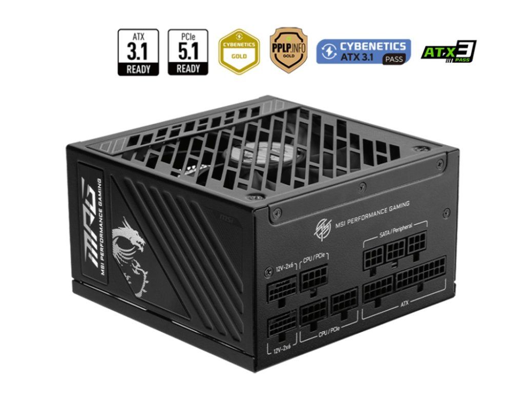 MSI MPG A1250GS PCIE5 Parametry: *Hodnocení účinnosti: 80 PLUS Gold (up to 90%) *Modular: Yes (full modular) *Velikost ventilátoru: 135 mm *Ložisko ventilátoru: Fluid Dynamic Bearing *Rozměry (HxŠxV): 150 x 150 x 86 mm *Typ PFC: Active PFC *Rozsah vstupního napětí: 100-240V~ *Power Watt: 1250W *Rozsah vstupní frekvence: 50-60 Hz *Ochrana: OCP/ OTP/ OPP/ SCP/ OVP/ UVP/ SIP/ NLO *ATX (24 pin): 1 *EPS (4+4 pin): 2 *PCI-E 5.1 (16 pin): 2 (600W) *PCI-E (6+2 pin): 1 *SATA (15 pin): 8 *PERIPHERAL (4 pin): 4 Záruka: 3 roky Odkaz na stránky výrobce: https://www.msi.com/Power-Supply/MPG-A1250GS-PCIE5/SpecificationDodatočné parametre