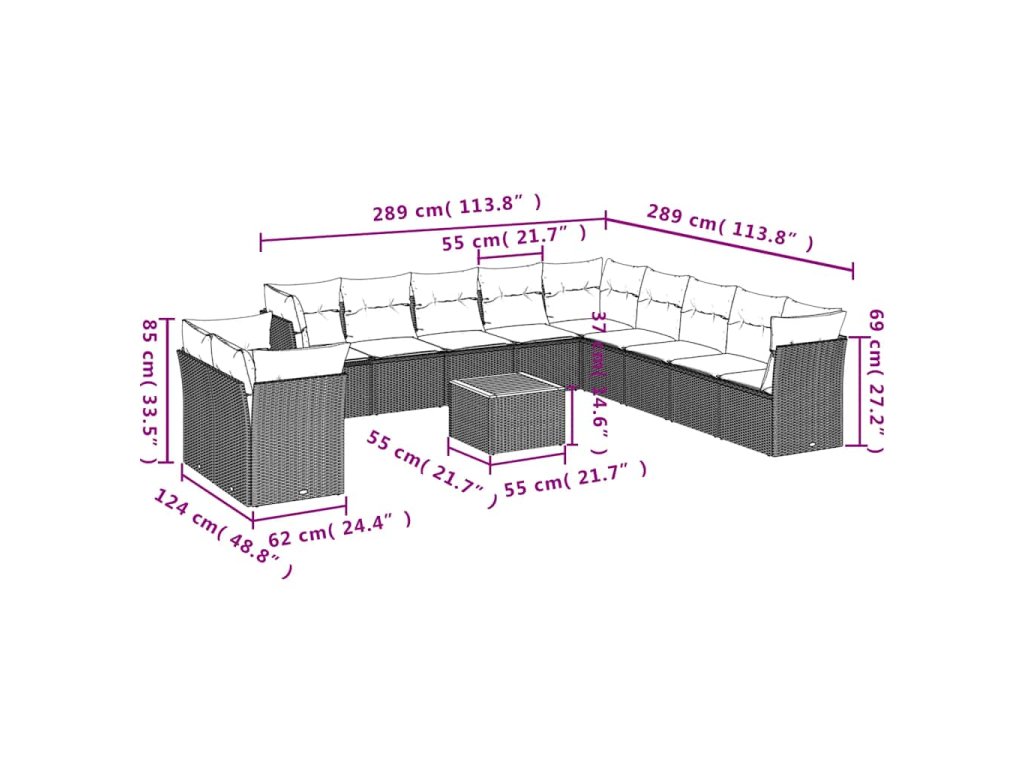 Multidom 12-dielna záhradná sedacia súprava s vankúšmi sivá polyratanová