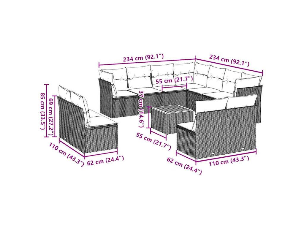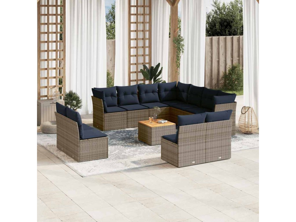 Multidom 12-dielna záhradná sedacia súprava s vankúšmi sivá polyratanová