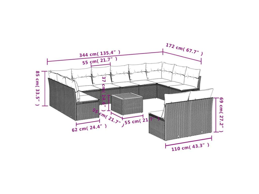 Multidom 13-dielna záhradná sedacia súprava s vankúšmi sivá polyratanová