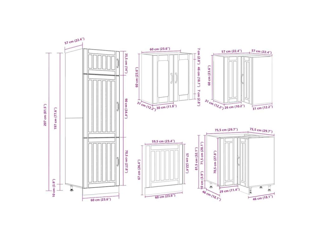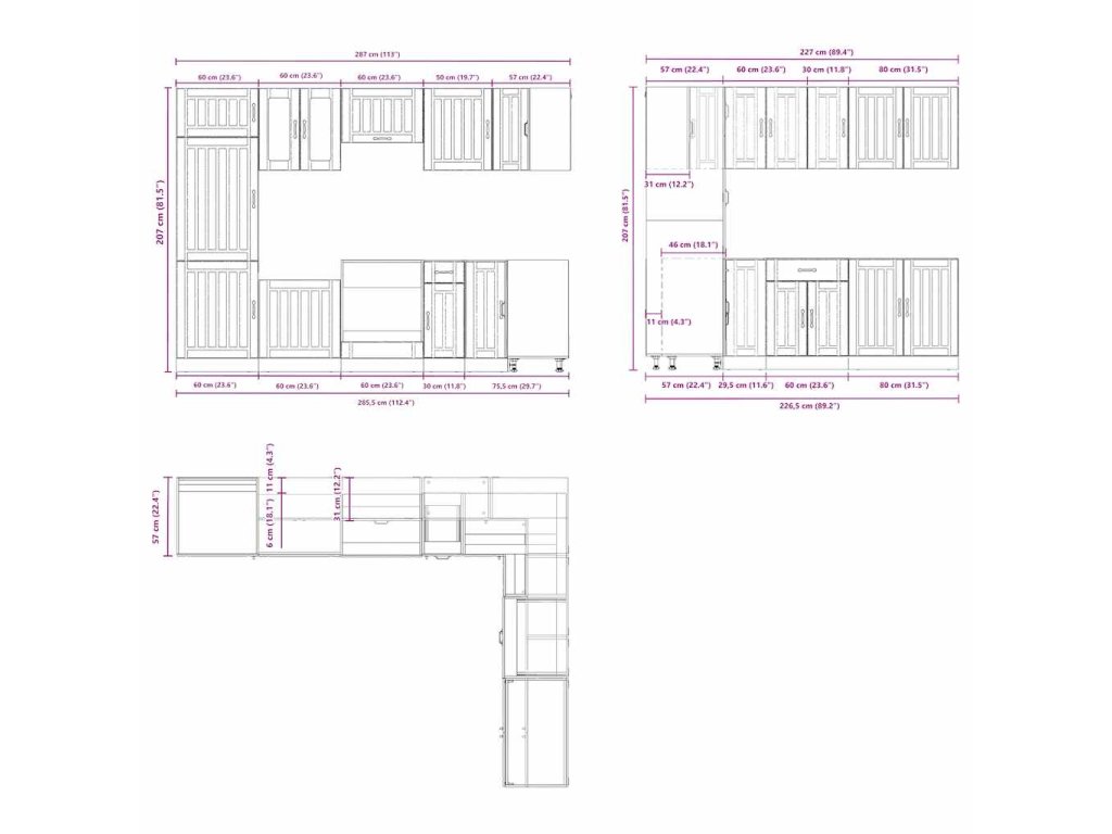 - 1 x Kuchynská skrinka: 60 x 57 x 207 cm (Š x H x V)