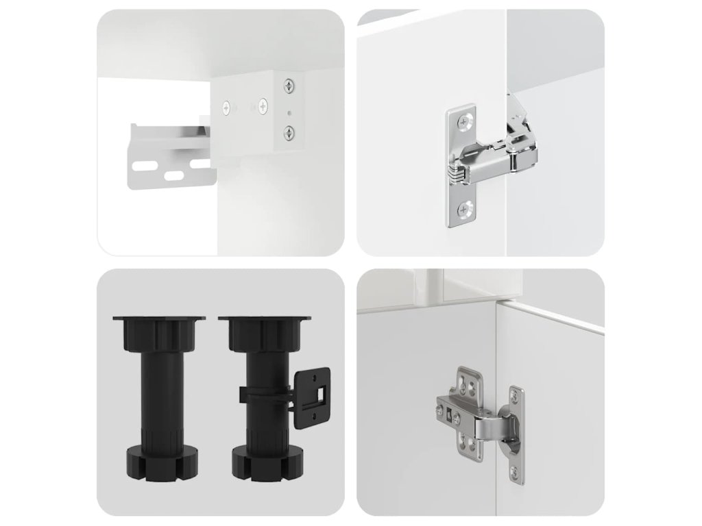 - Nastaviteľné nožičky: Spodné skrinky majú nastaviteľné nožičky, ktorých výšku je možné nastaviť tak, aby vyhovovali usporiadaniu vašej kuchyne.