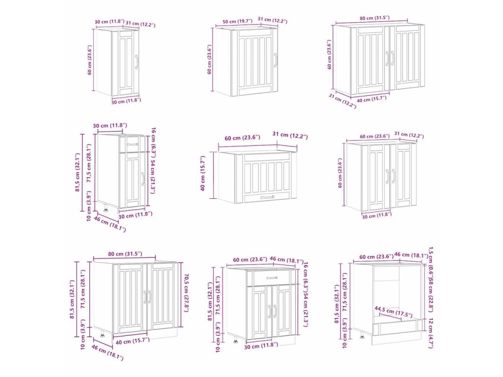 - Veľa úložného priestoru: Súprava kuchynských skriniek má veľa priehradiek a ponúka dostatok miesta na uloženie misiek, tanierov, hrncov a ďalších kuchynských spotrebičov.