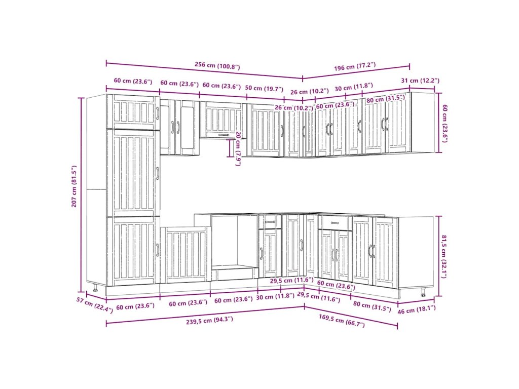 - 1 x Kuchynská skrinka: 60 x 57 x 207 cm (Š x H x V)