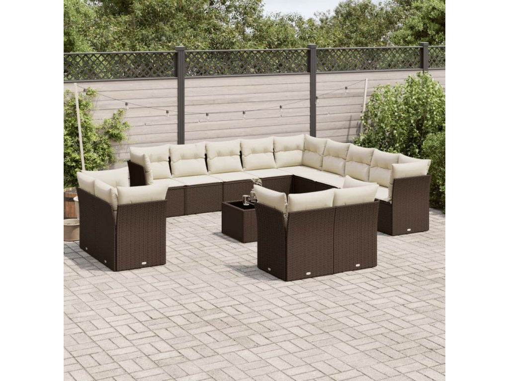 Multidom 14-dielna záhradná sedacia súprava s vankúšmi hnedý polyratan