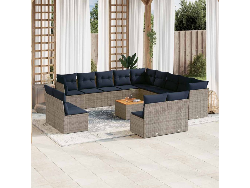 Multidom 14-dielna záhradná sedacia súprava s vankúšmi sivá polyratan