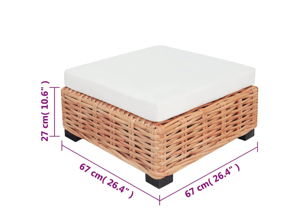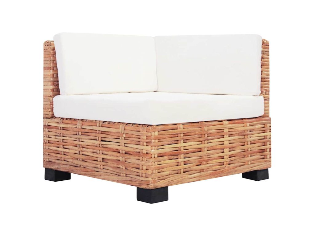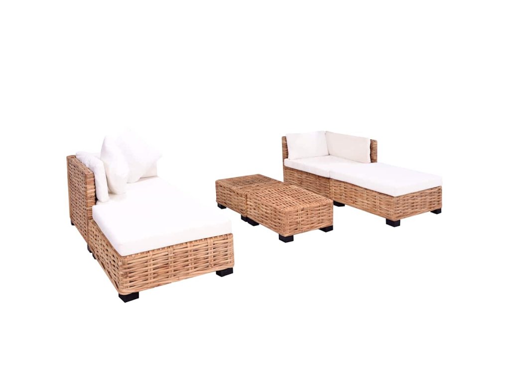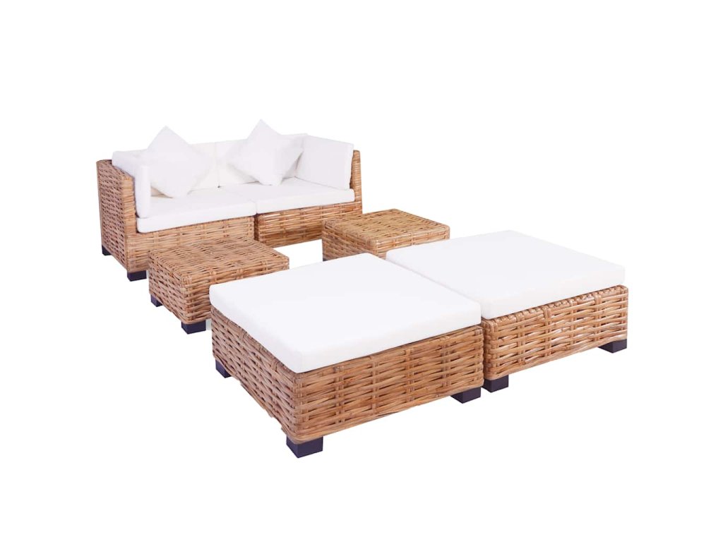 Rám je pokrytý prírodným ratanom, ktorý je atraktívny nielen vďaka svojmu prirodzenému vzhľadu s ozdobným pleteným vzorom, ale je aj veľmi odolný. Nohy pohovky sú vyrobené z kvalitného mahagónového dreva. Podložky poskytujú požadované pohodlie. Montáž je jednoduchá. Celá súprava dodá vášmu príbytku nádych rustikálneho štýlu!