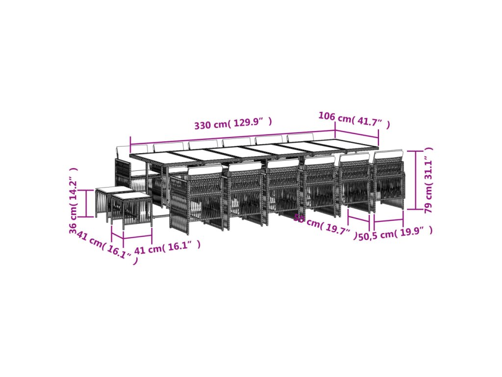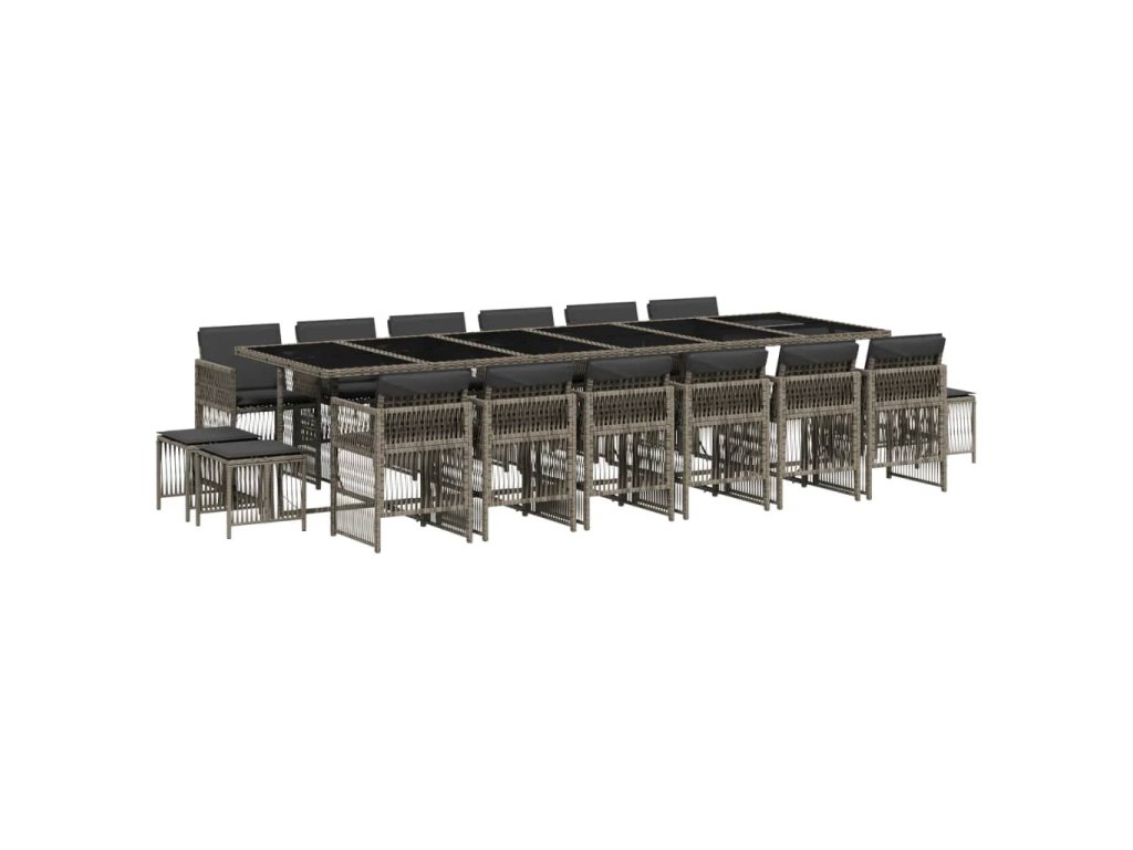 Multidom 17-dielna záhradná jedálenská súprava s vankúšmi sivá polyratan
