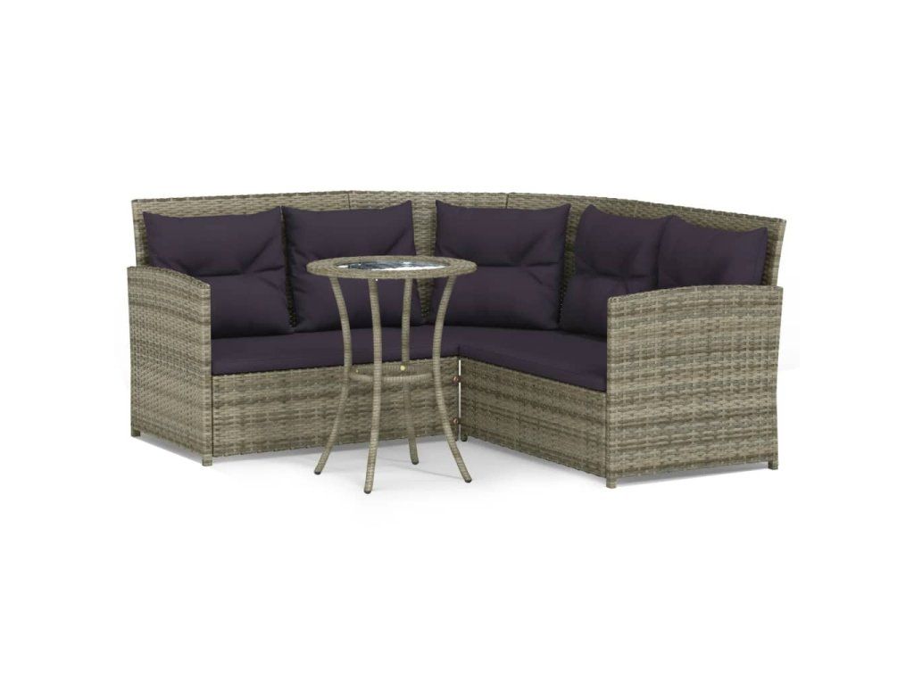 Multidom 2-dielny záhradný sedací set v tvare L a vankúše polyratan sivý