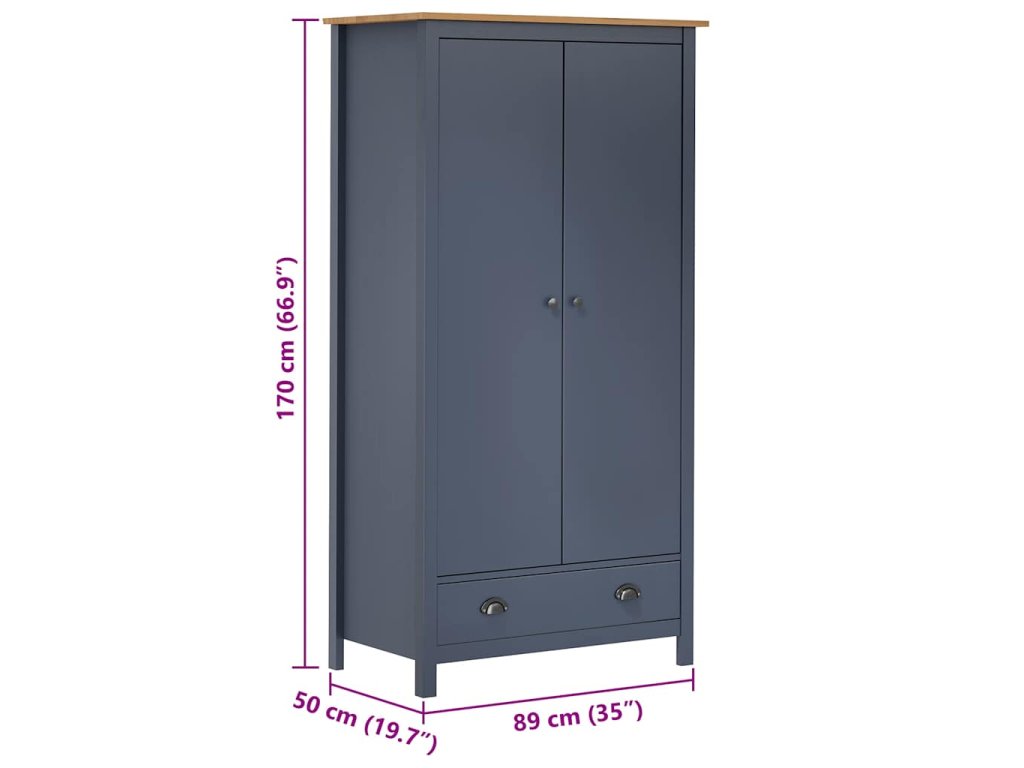 Šatník, vyrobený z borovicového masívu, je veľmi odolný. Skrinka na šaty má 1 zásuvku a 1 poličku, čo poskytuje dostatočný priestor na uloženie menších predmetov na dosah. Má veľkú priehradku vybavenú závesnou tyčou, pomocou ktorej môžete zavesiť kabáty, šaty atď. Montáž skrinky je jednoduchá.