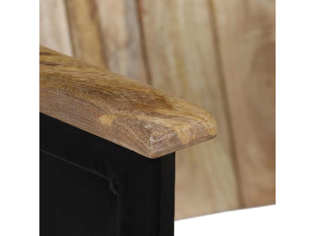 Sedadlá, opierky na ruky a operadlá lavičky sú vyrobené z mangového dreva, ktoré je pevné, stabilné, trvácne a krásne a remeselné opracovanie len umocňuje ich pôsobivý retro štýl. Každý krok výrobného procesu sa vykonáva s najväčšou starostlivosťou, či už je to leštenie, natieranie alebo lakovanie. Vďaka remeselnému opracovaniu a krásnej textúre dreva je každý kus nábytku jedinečný a trochu odlišný od ostatných. Pevný oceľový rám prináša potrebnú stabilitu a zároveň lavičke dodáva krásny industriálny vzhľad. Montáž je jednoduchá.