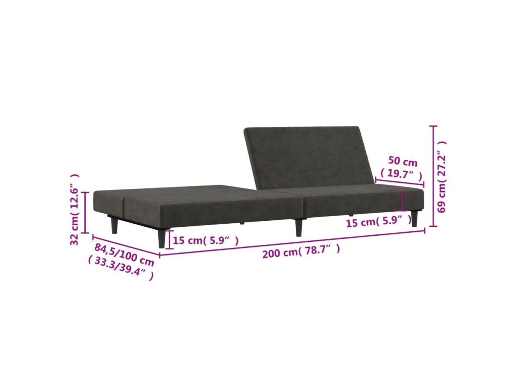 Multidom 2-miestna rozkladacia pohovka, tmavosivá, zamat