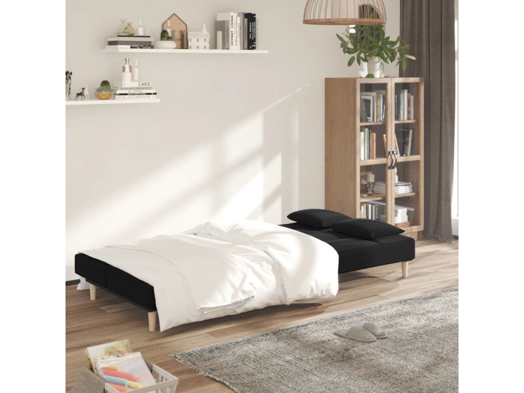 Multidom 2-miestna rozkladacia pohovka s 2 vankúšmi, čierna, látka