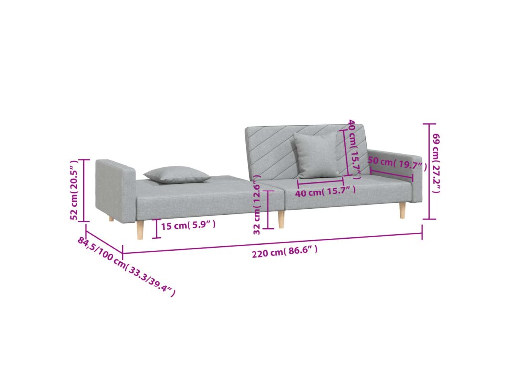 Multidom 2-miestna rozkladacia pohovka s 2 vankúšmi, svetlosivá, látka