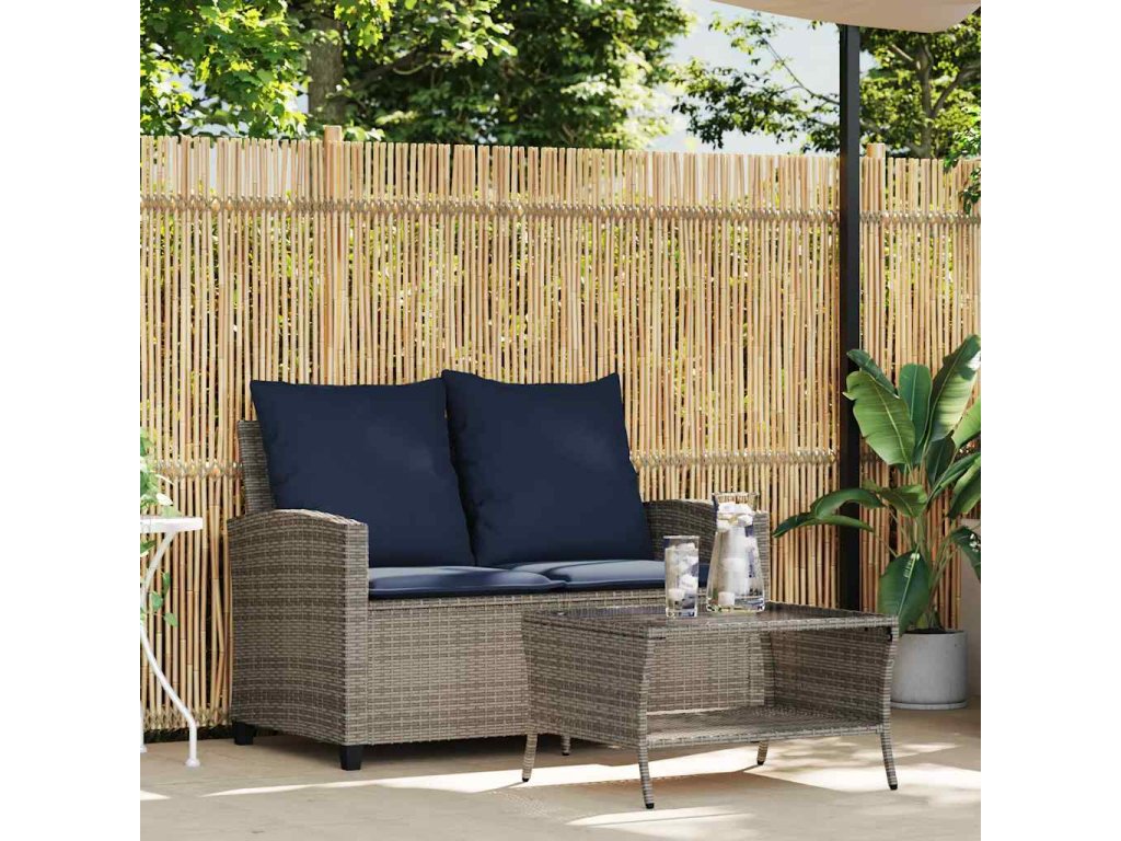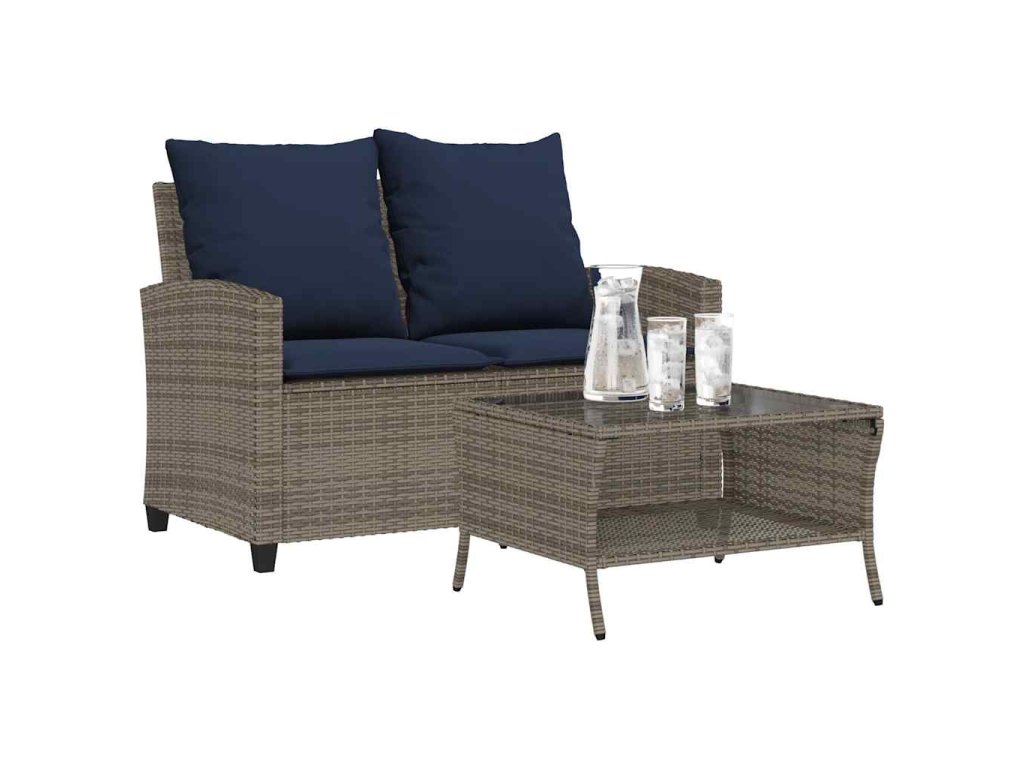 Multidom 2-miestna záhradná pohovka so stolom vankúše sivý polyratan