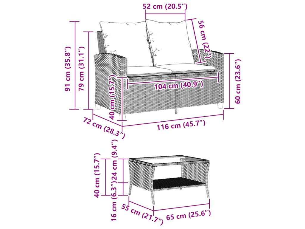 - Materiál: PE ratan, oceľ s práškovou povrchovou úpravou, tvrdené sklo