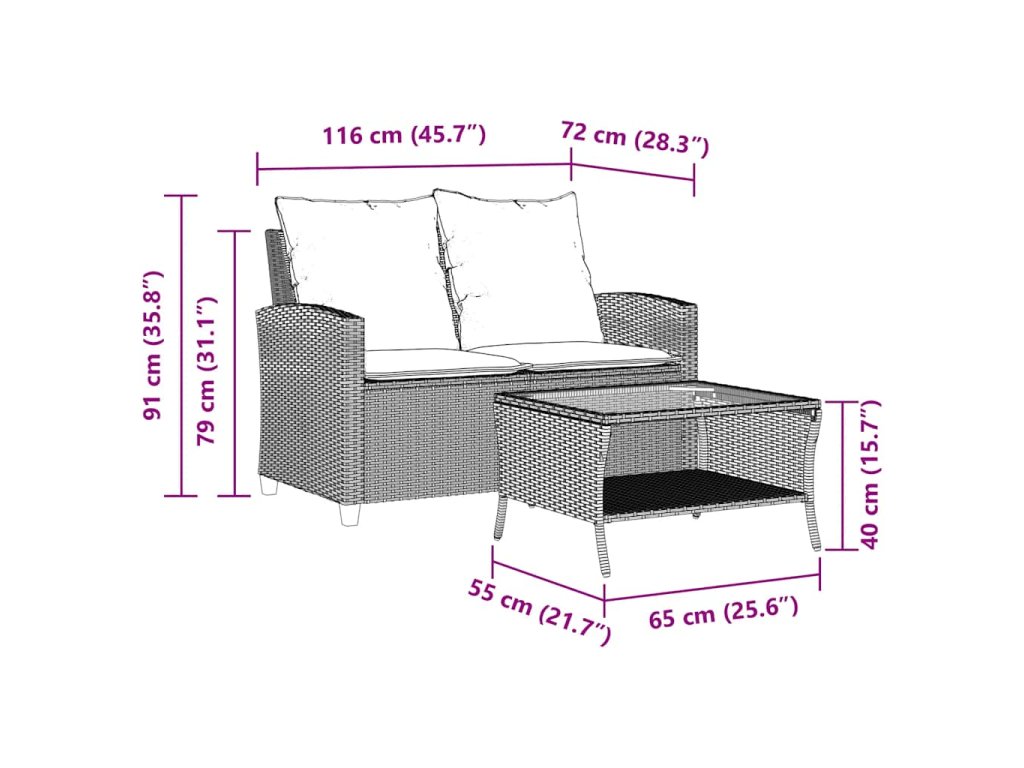 - 1 x 2-miestna záhradná pohovka