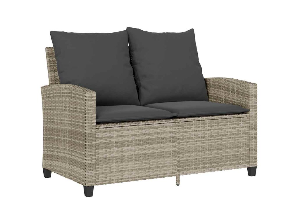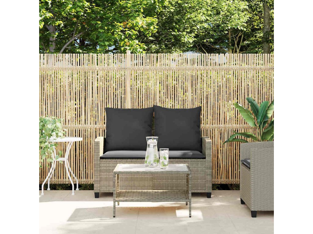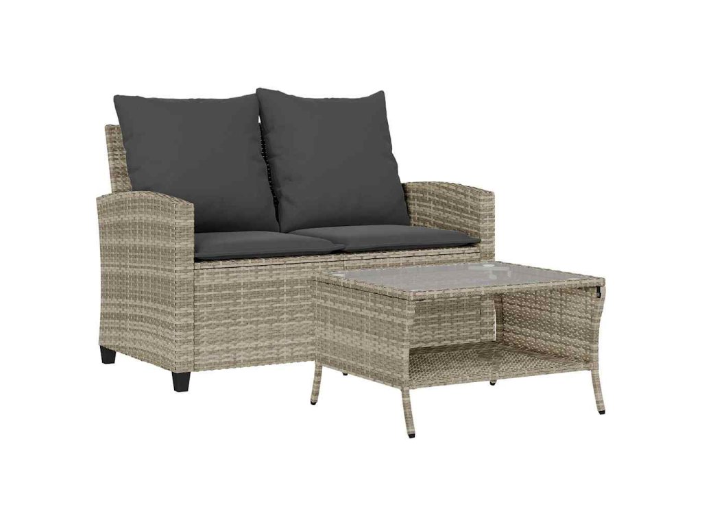 Multidom 2-miestna záhradná pohovka stôl a vankúše bledosivá polyratan