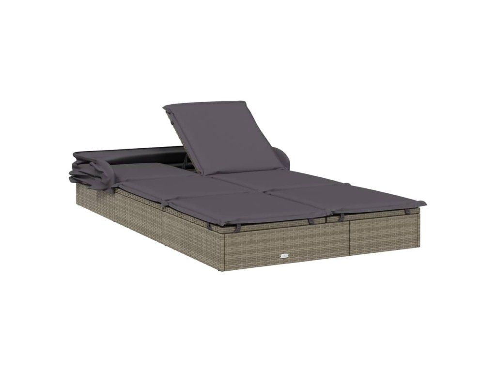 Multidom 2-miestne lehátko so strieškou sivé 213x118x97 cm polyratan