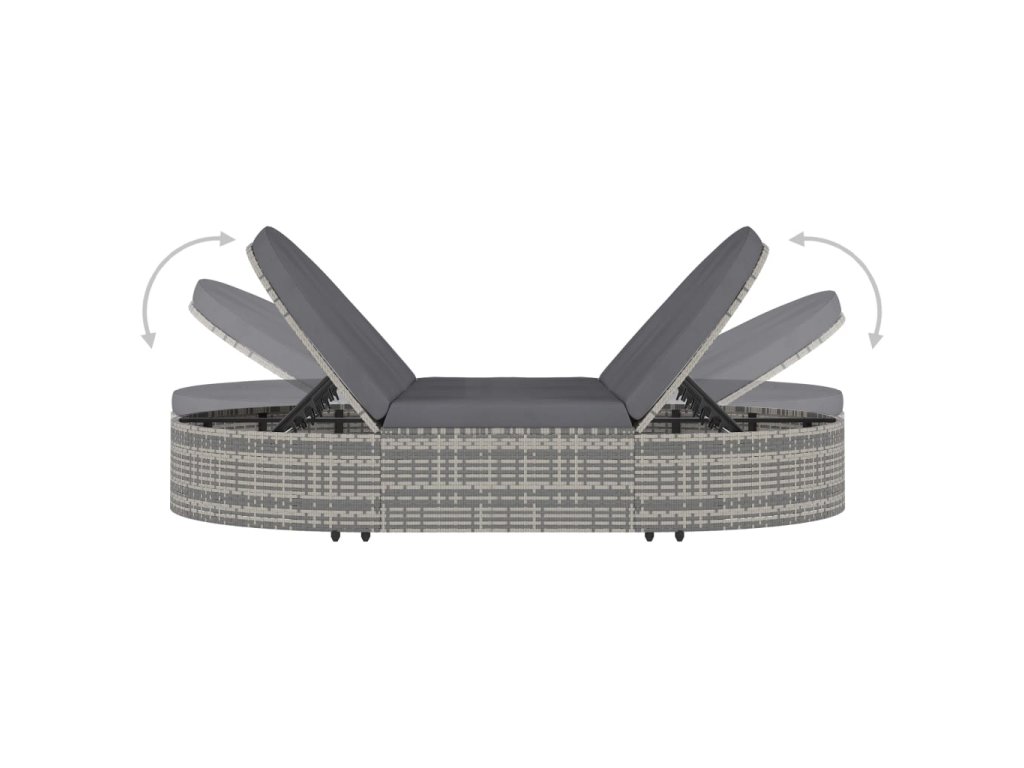 Oválna záhradná posteľ je vyrobená z PE ratanu, ktorý je vodeodolný a odolný voči poveternostným vplyvom, a tak je vhodná na celoročné používanie v exteriéri. Ležadlo pre dvoch má pevný a trvácny oceľový rám s práškovou povrchovou úpravou. Dá sa na oboch stranách nastaviť do piatich polôh pre čo najväčšie pohodlie. Poťahy na vankúše so zipsmi sa dajú jednoducho zvliecť a oprať.