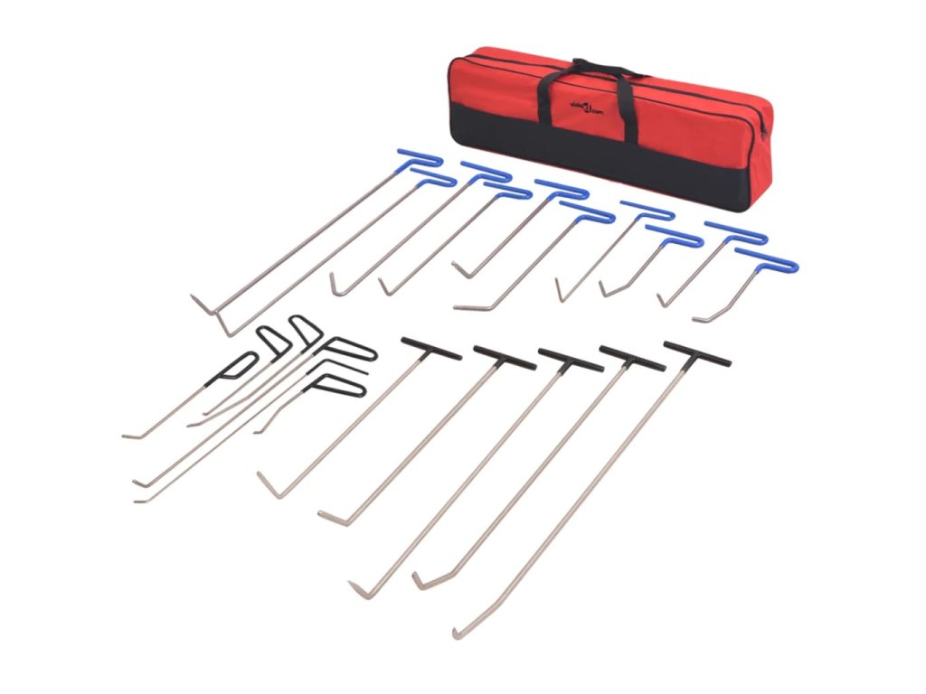 Sada obsahuje 21 tyčí na opravu preliačín. Sada sa dodáva v praktickej taške pre jednoduchú prepravu a skladovanie.