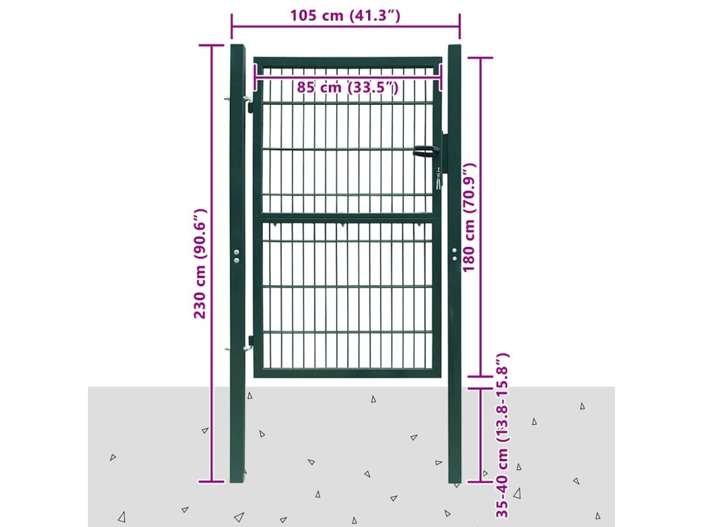 Záhradná brána je tvorená jedným zváraným vertikálnym drôtom a dvoma horizontálnymi drôtmi, ktoré jej dodávajú mimoriadnu pevnosť, vďaka čomu poskytuje optimálnu bezpečnosť a súkromie a zároveň vytvára pôsobivý vstup na pozemok. Brána je vyrobená z ocele s práškovou povrchovou úpravou, ktorá je odolná voči hrdzi a korózii.