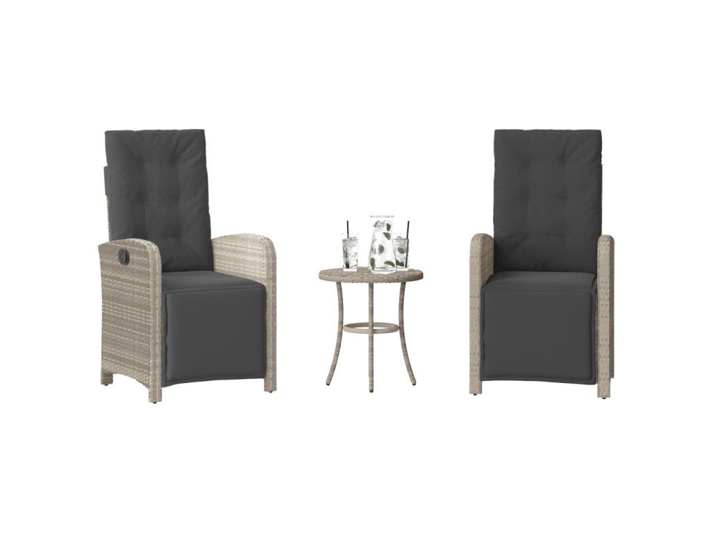 Multidom 3-dielna bistro súprava s podložkami bledosivá polyratan