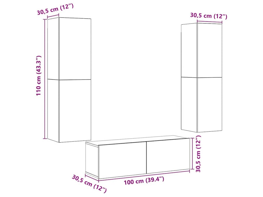 - Rozmery nástennej TV skrinky (D): 30,5 x 30 x 110 cm (Š x H x V)