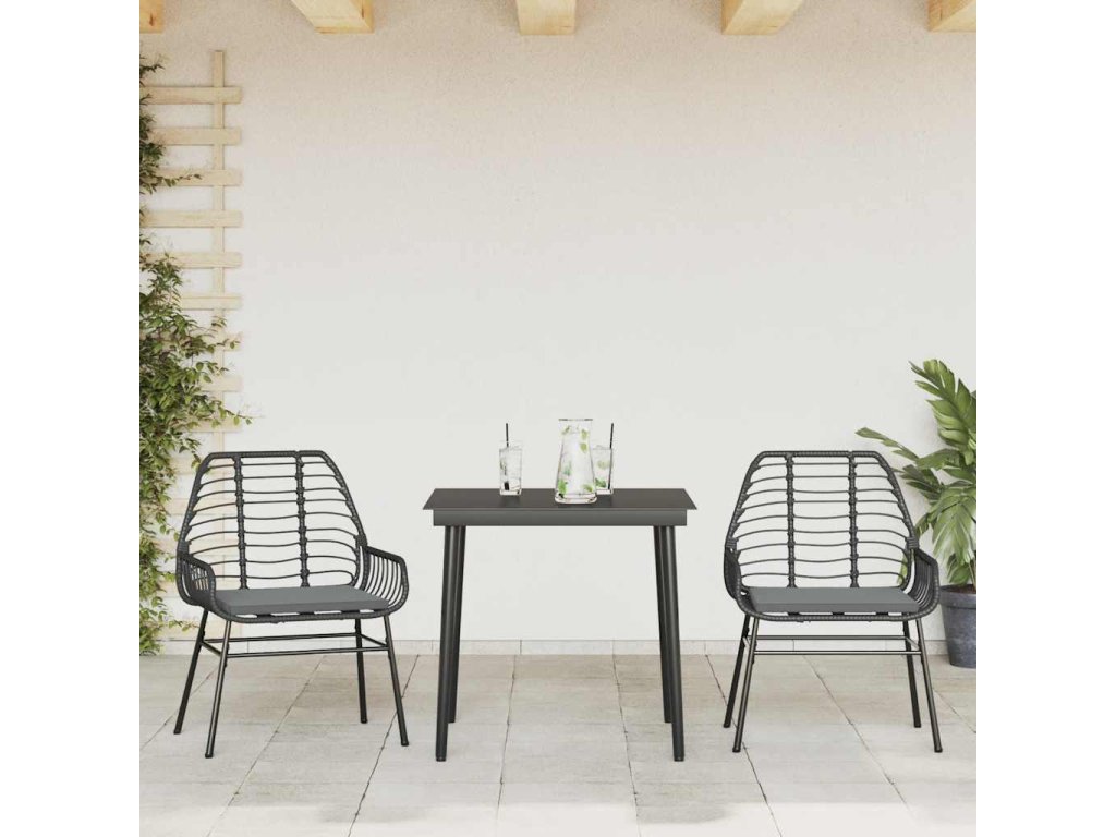 Multidom 3-dielna záhradná jedálenská súprava+podložky, čierna polyratan