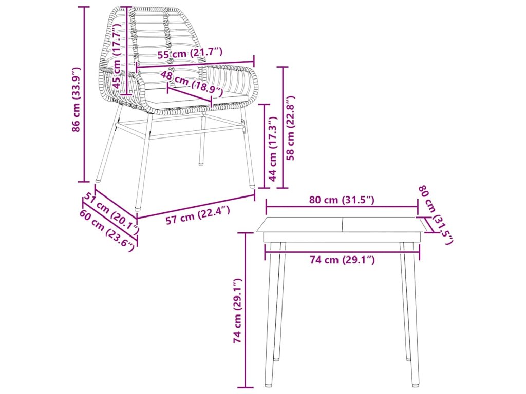 - Rozmery stola: 80 x 80 x 74 cm (D x Š x V)