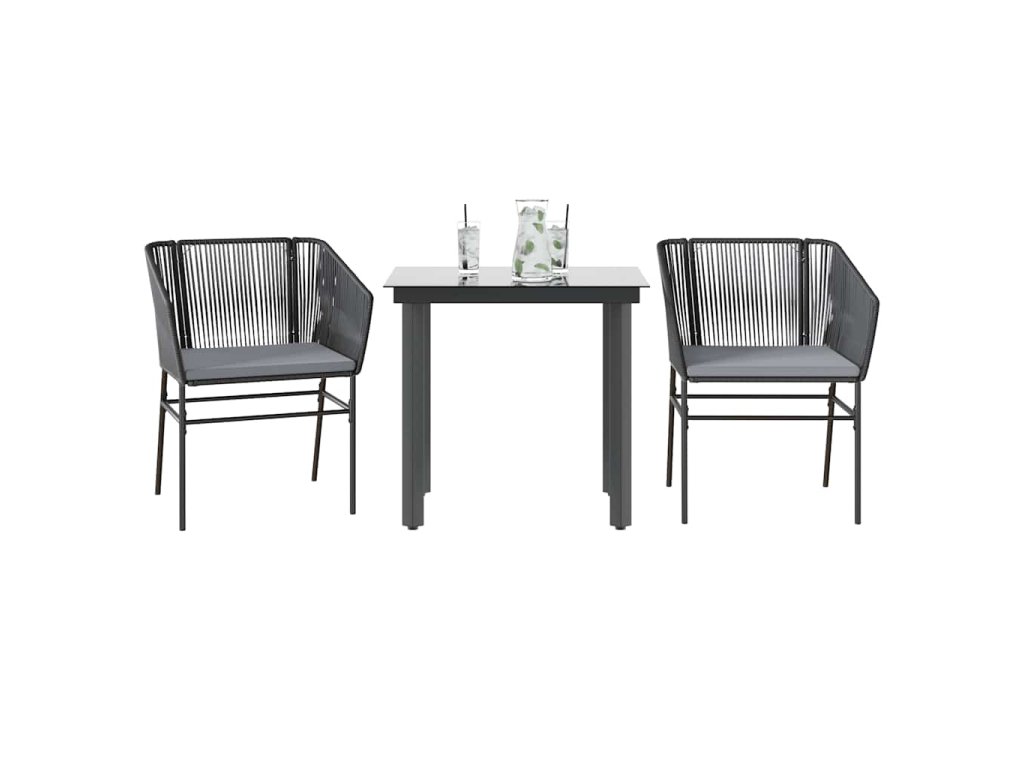 Multidom 3-dielna záhradná jedálenská súprava+podložky, čierna polyratan