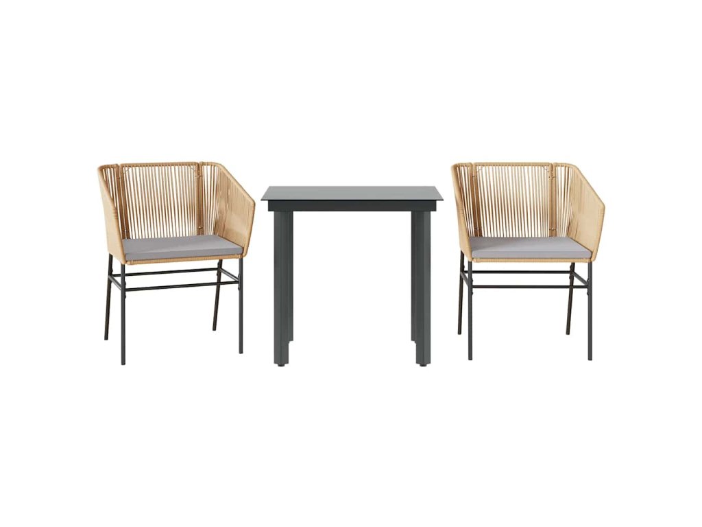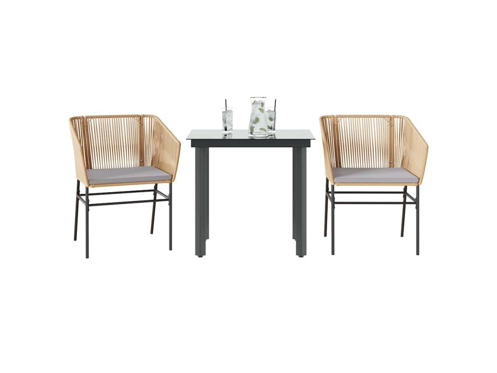 Multidom 3-dielna záhradná jedálenská súprava+podložky, hnedá, polyratan