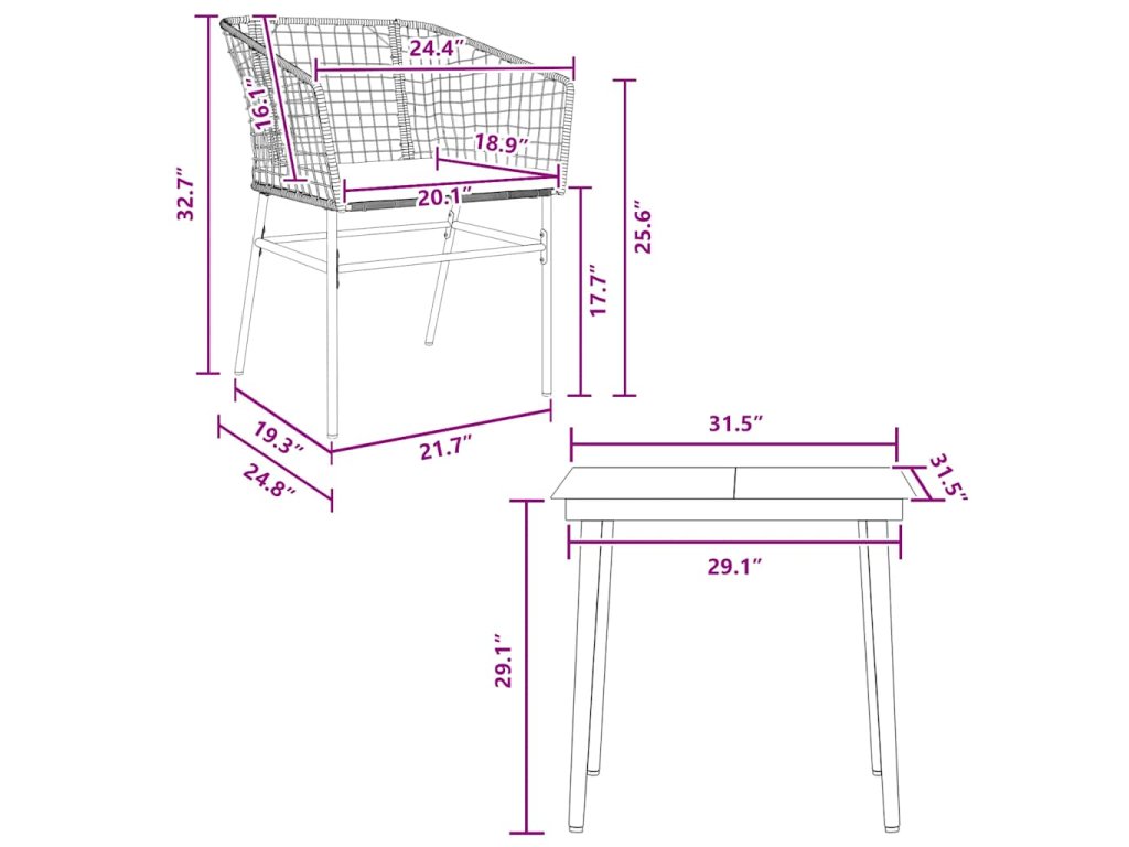 - Materiál: PE ratan, oceľ s práškovou povrchovou úpravou