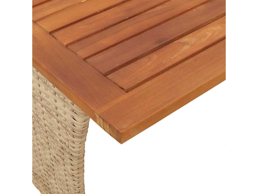- Stabilná a ľahko čistiteľná stolová doska: Tento záhradný stôl má dosku z akáciového dreva, ktorá je stabilná, odolná a ľahko sa čistí vlhkou handričkou.