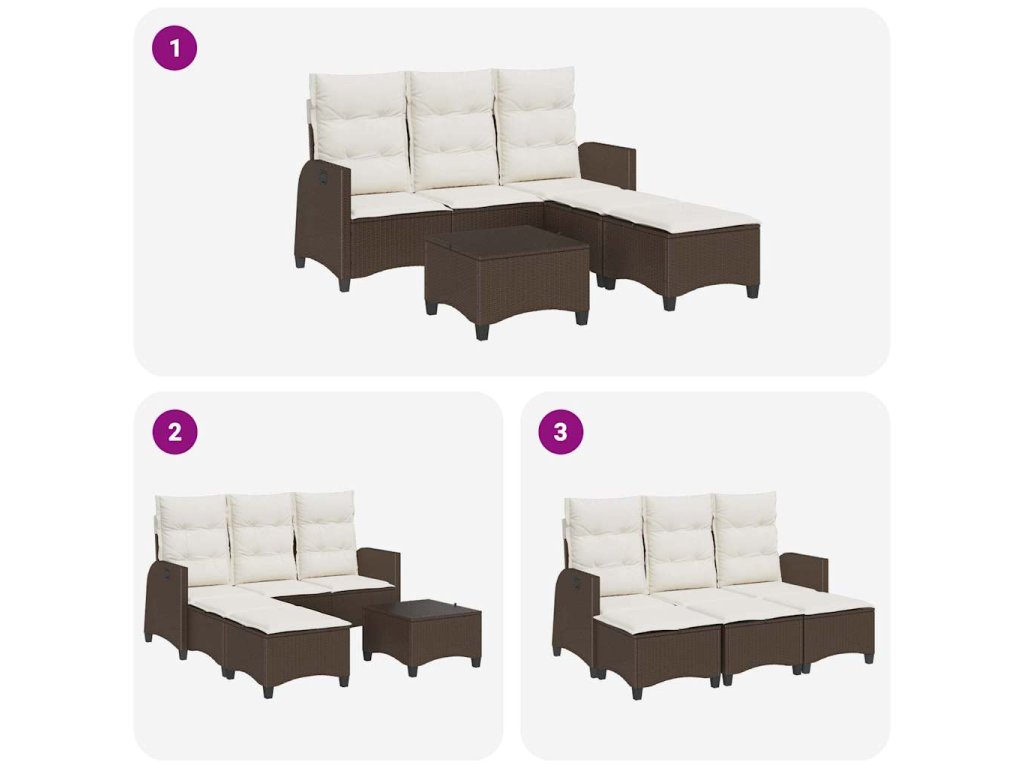 Multidom 3-dielna záhradná súprava pohoviek s vankúšmi hnedá tvare L