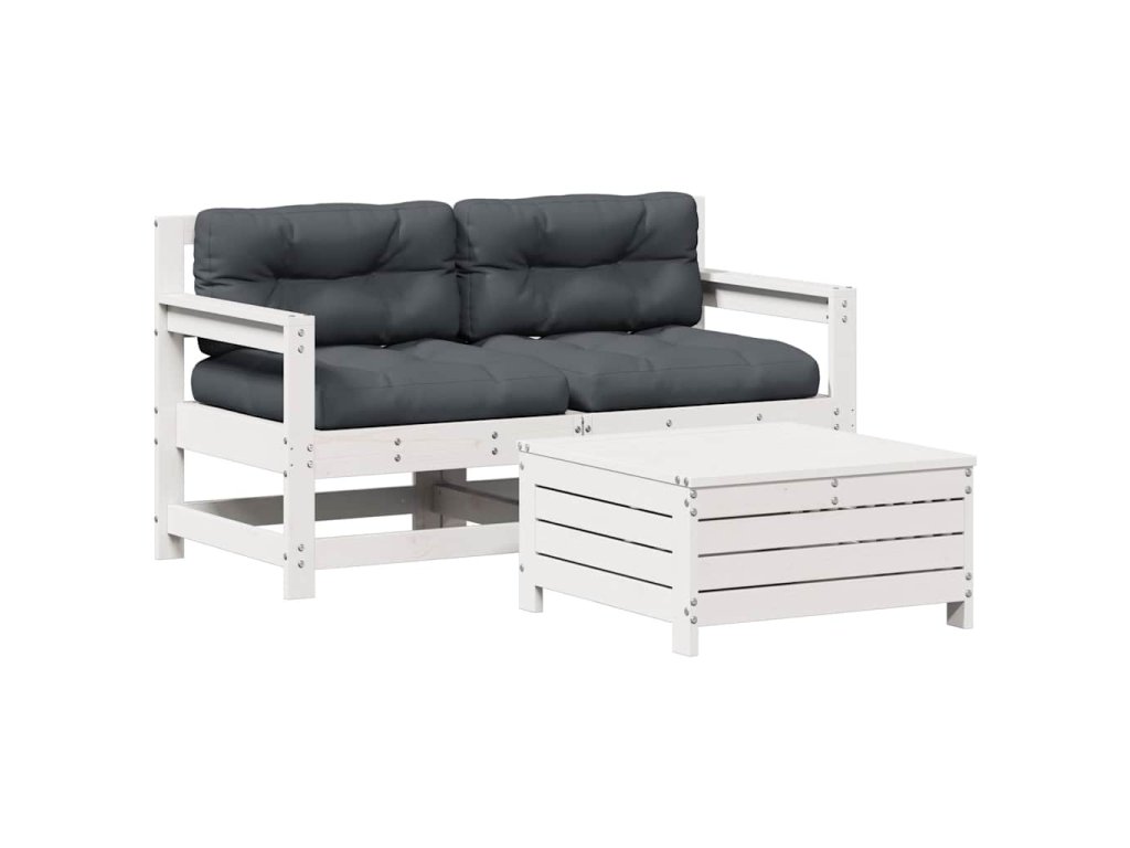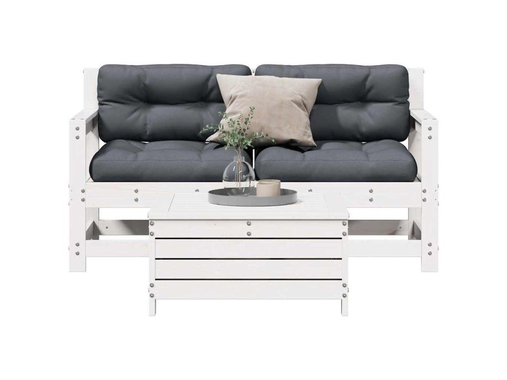 Multidom 3-dielny záhradný sedací set so sedákmi biely borovicový masív